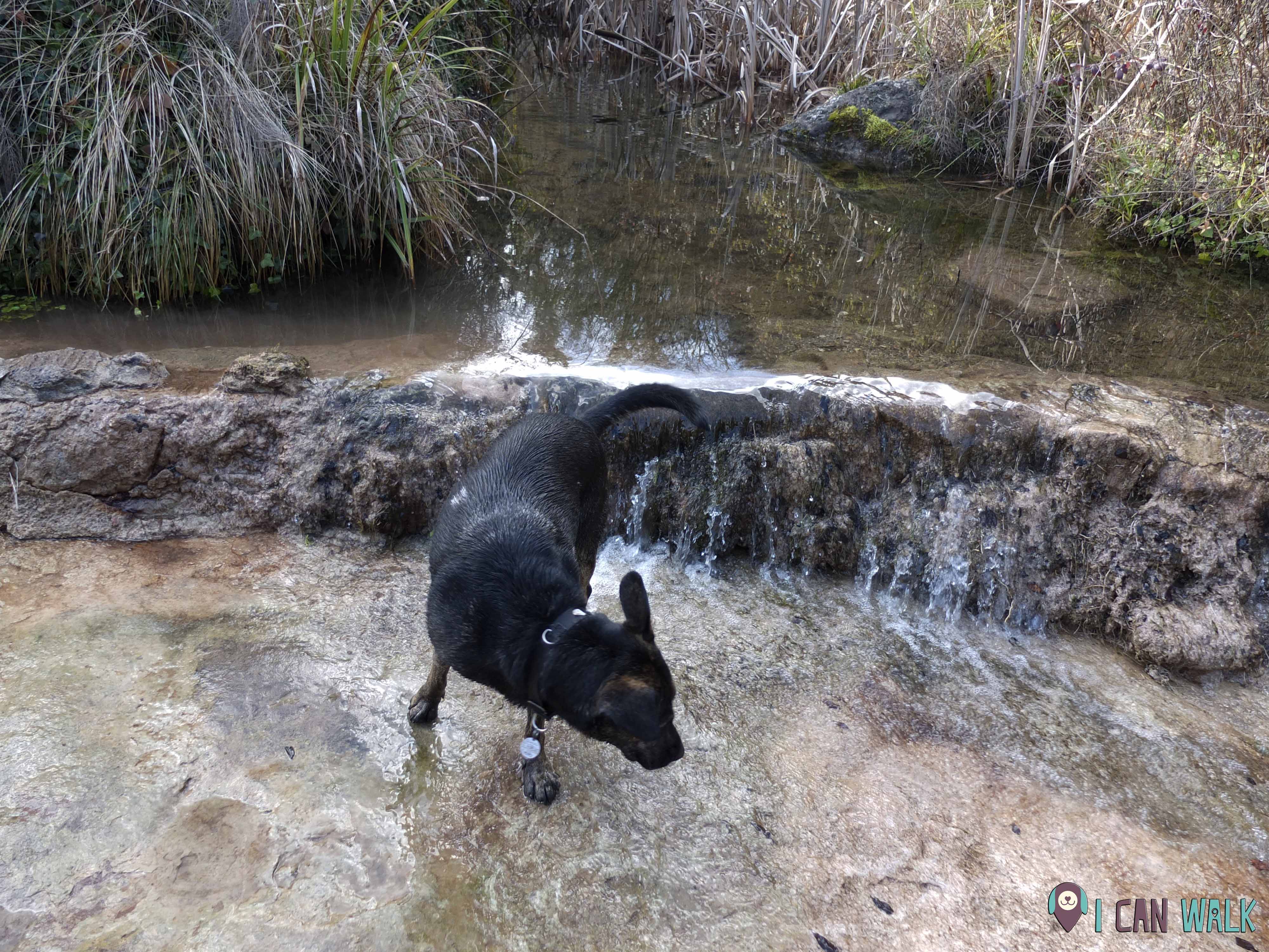 Si sigues avanzando, muy cerca del Forn de Calç, verás el Salto de Agua Blanquera, donde suele haber algo de agua para que los perros se remojen.
