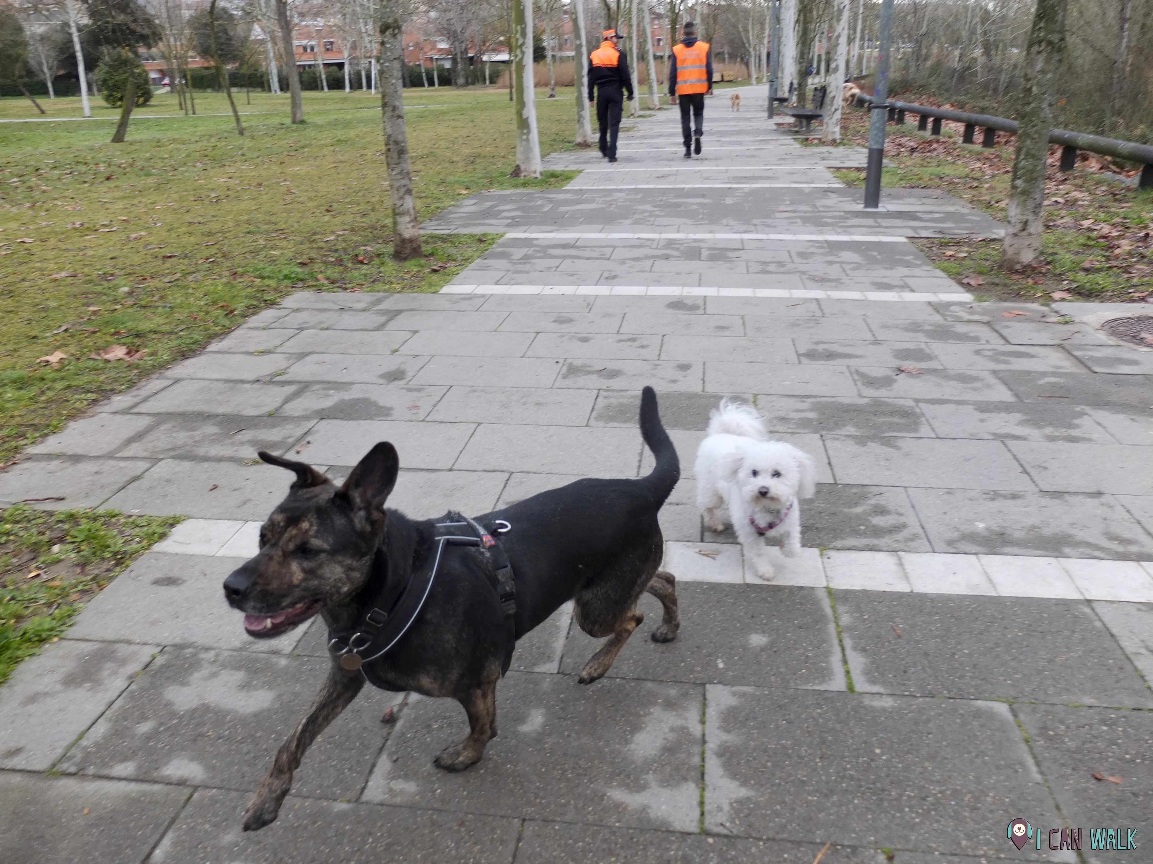 Una vez estés volviendo tras dar la vuelta al final del parque, cuando vayas llegando de nuevo al último paso de cebra que has cruzado, a mano derecha tienes un parque para perros donde tu mejor amigo puede correr un rato más y hacer amigos nuevos.