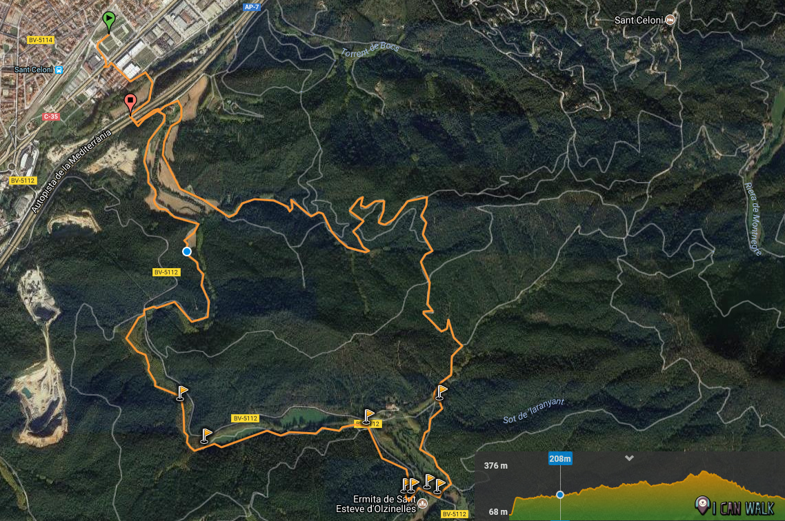 Si has aparcado en Sant Celoni, tan solo has de deshacer camino hasta llegar de nuevo al coche.