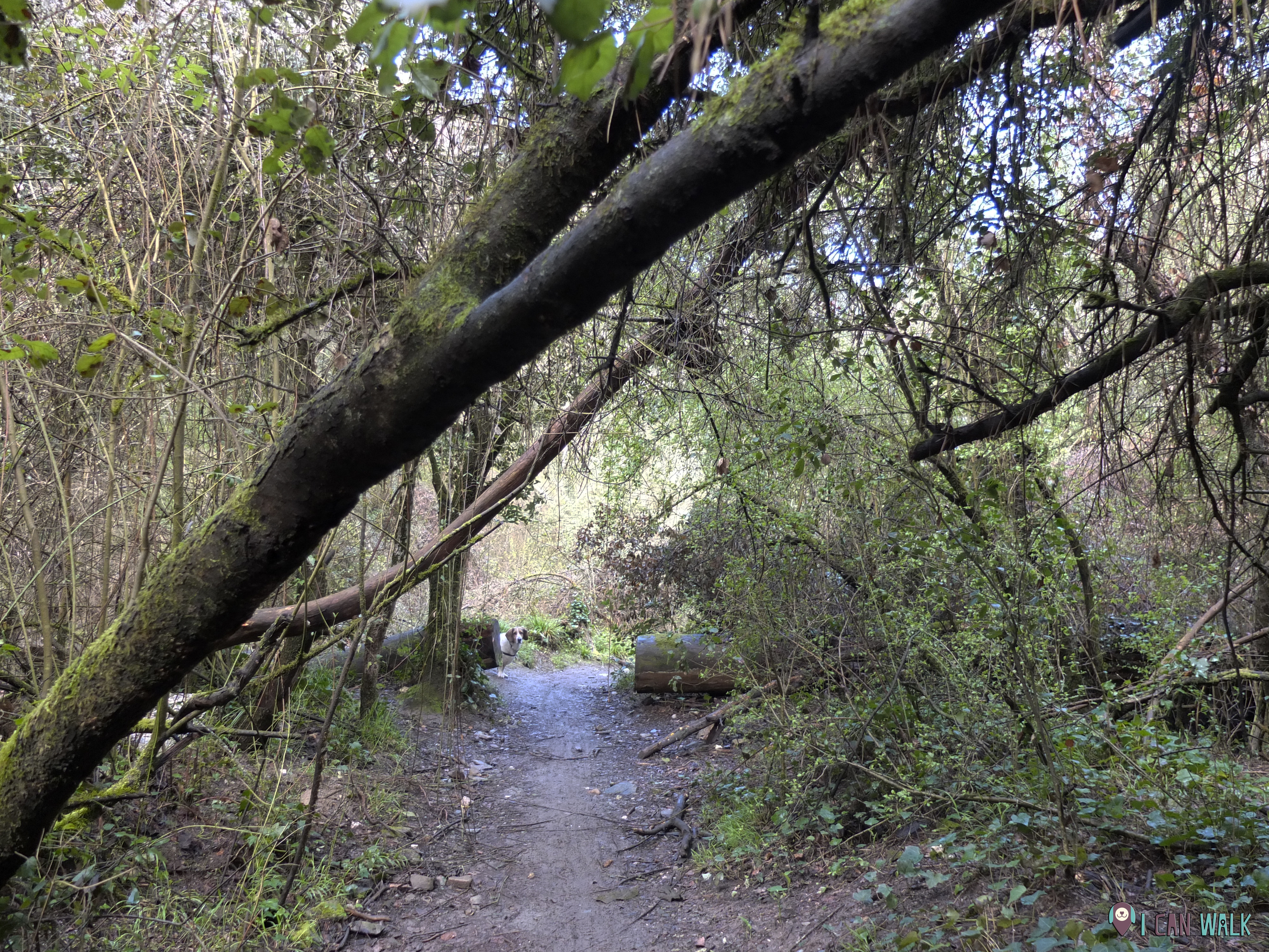 Esta entrada del sendero es algo difícil de ver. Se encuentra a unos 600m de dónde has dado media vuelta, pasando entre los árboles hasta llegar a un pequeño tramo más estrecho y ascendiente.
