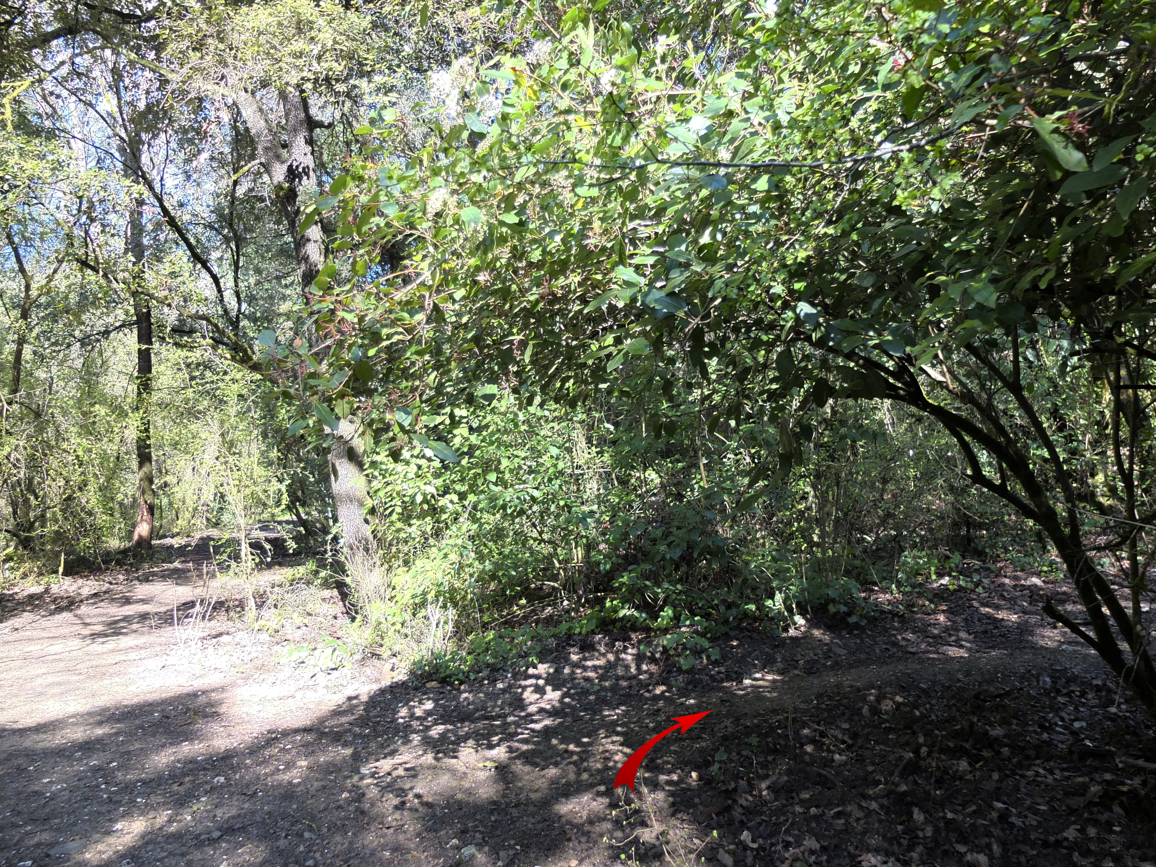 Para seguir el camino, cruza el agua hasta el otro lado, y pasa bajo un tronco caído. Verás que el senderito se distingue bastante bien.