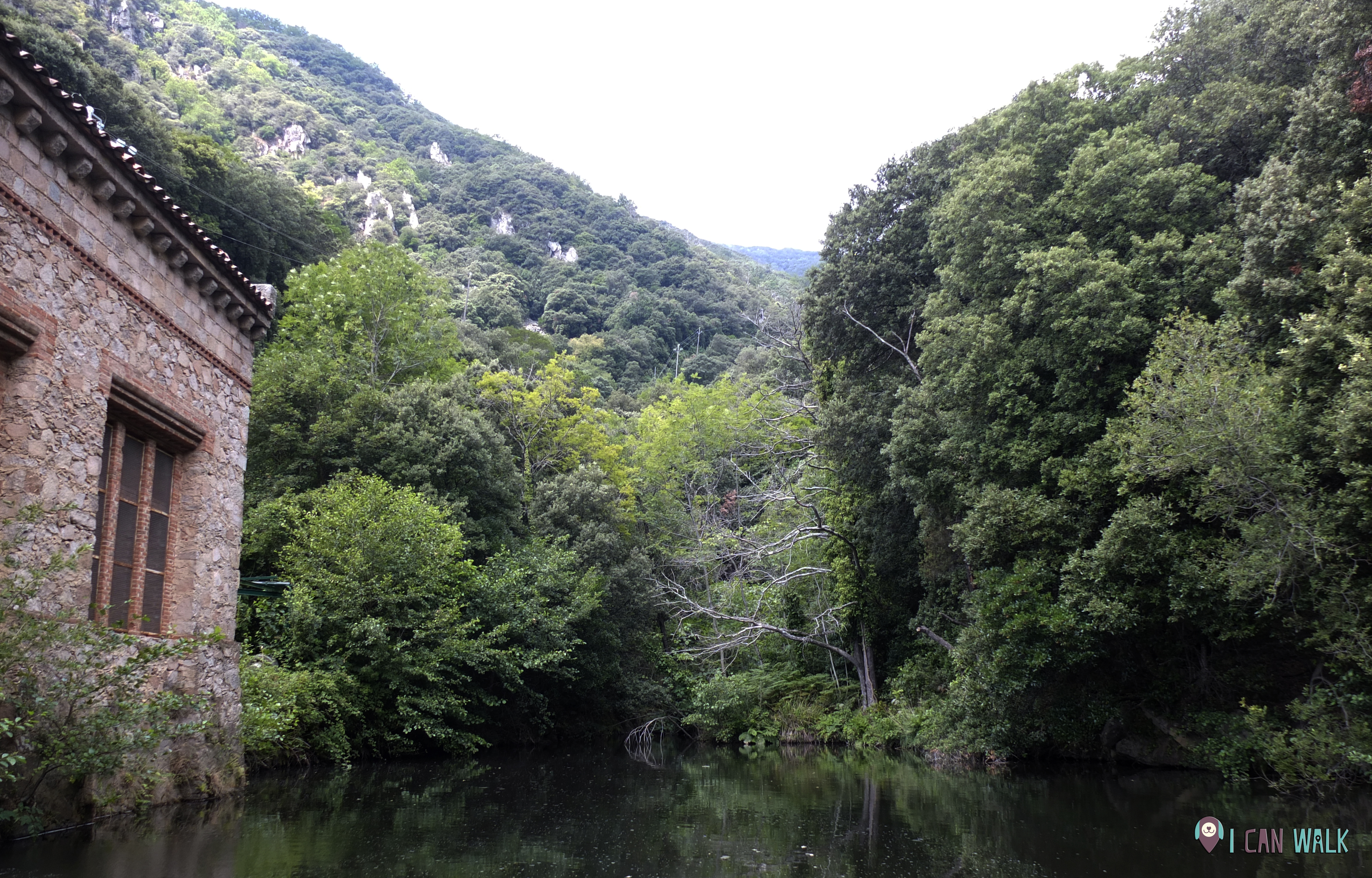 Aquí, justo dónde sigue el rio tras la central, hemos hecho una parada para bañarnos -humanos y perros- en los dos pequeños gorgs que crea el rio.