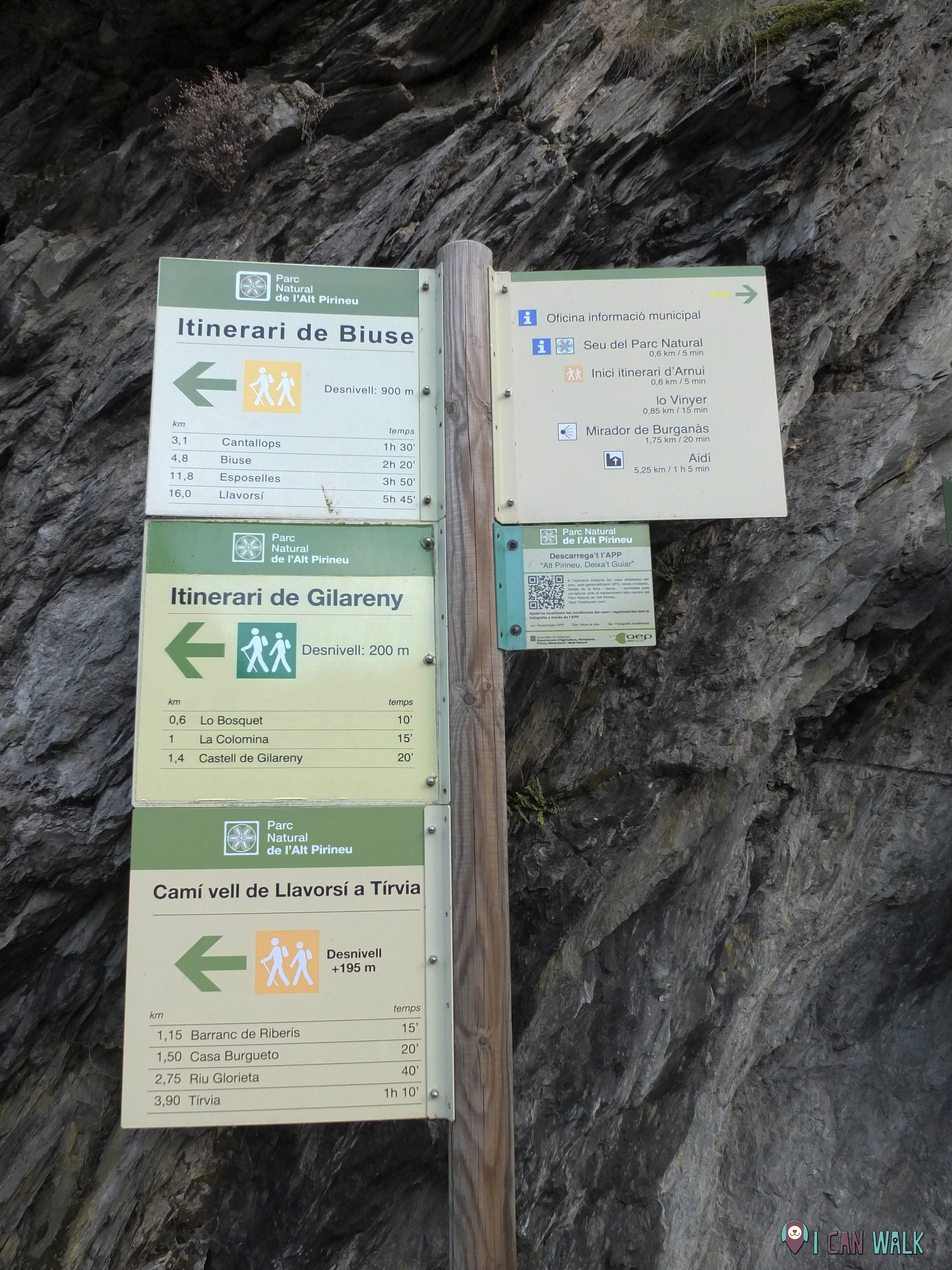 Nuestra mala suerte sigue y, mientras estamos remojando los pies en el rio, vemos como se acerca una tormenta. Nos apresuramos a llegar bajo techo y poco después empieza a granizar, lo que nos deja «encerrados» hasta la noche. La idea era hacer una ruta «cañera» durante el mediodía-tarde, que está señalizada como Itinerari de Biusse. Se trata de una ruta por el bosque de Biuse, de unos 15 km, y 1000m de desnivel. Calcula bien el tiempo de ruta (algo menos de 6h) para que no te pille la noche, y no la hagas en pleno verano ni en invierno.
