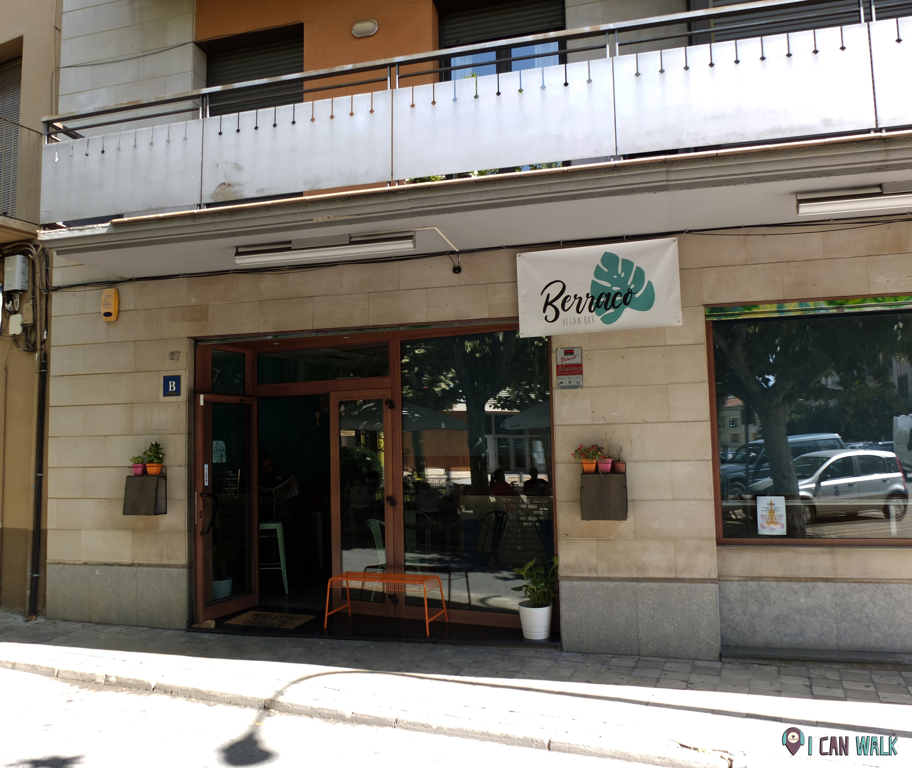 La siguiente parada la hacemos en Tremp. Vamos expresamente a un local que nos han recomendado y, aunque ya hemos desayunado, vamos a tomar alguna cosa. Este local es vegano y admite perros, se llama Berraco y está en la Plaça de la Creu, muy cerca de la Iglésia Santa Maria de Valldeflors.