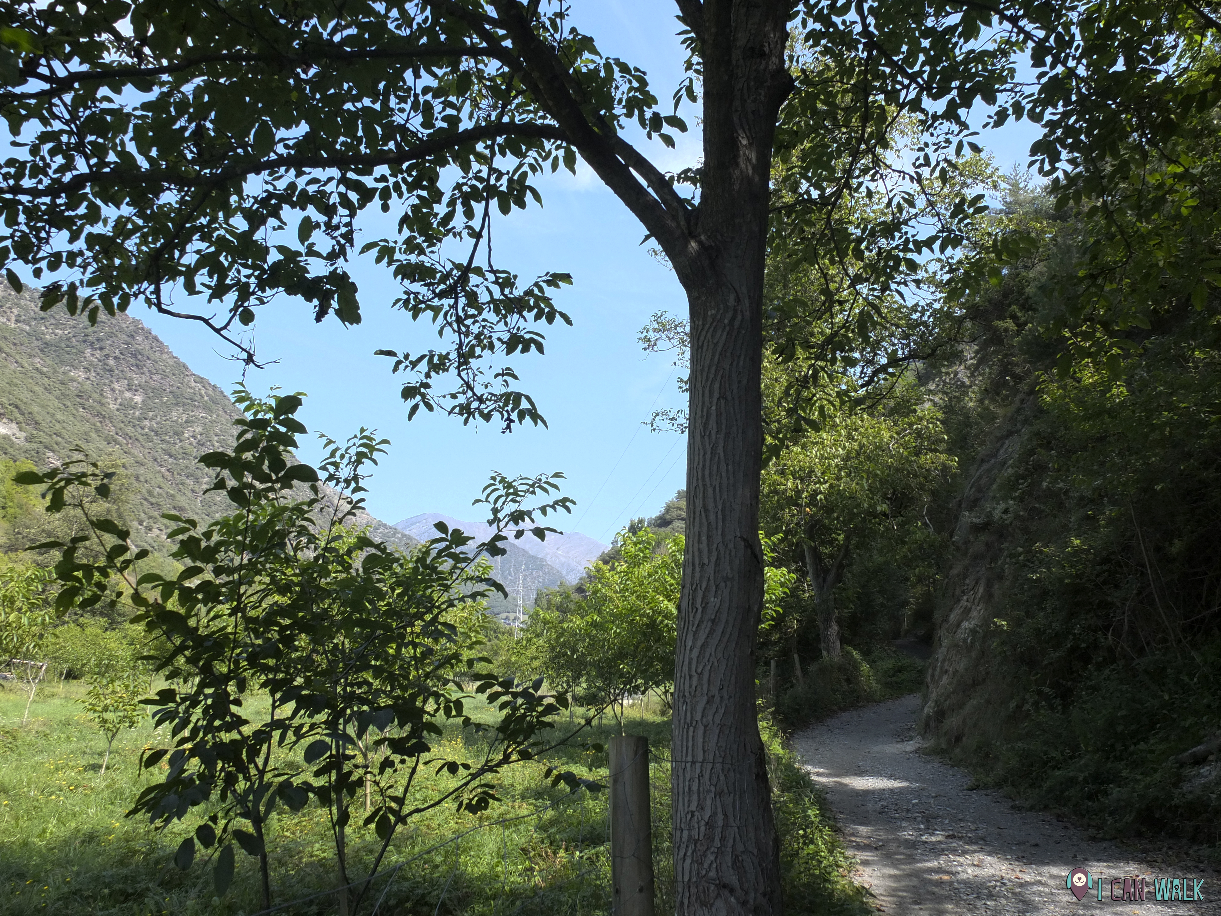 Cuando llegues al puente para cruzar el rio, el camino continúa por mano izquierda, bordeando un prado.