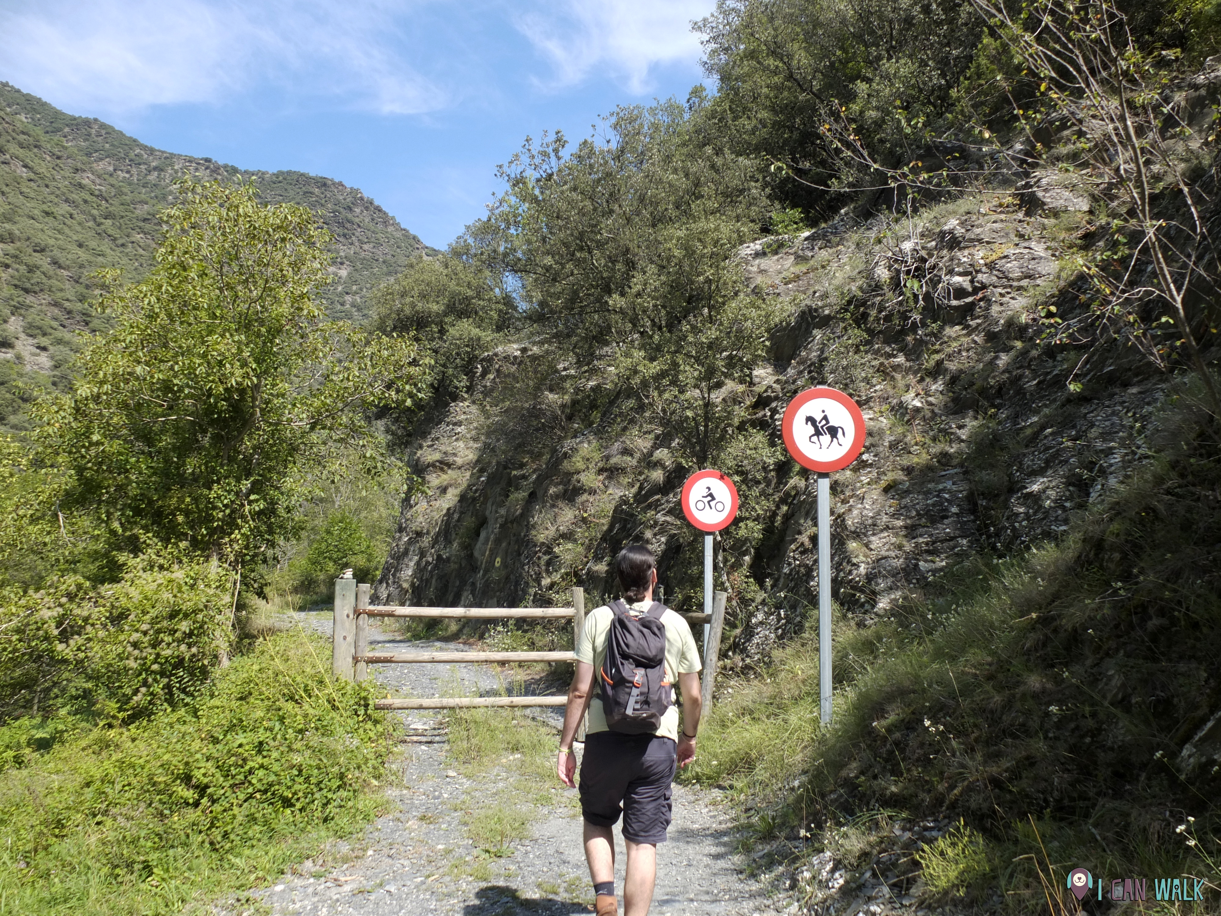 Por este camino pasarás por delante del Hotel Riberies, desde este punto puedes encontrar turistas dando paseos a caballo, hasta unos metros más allá dónde verás una señal te indica que ya no se puede pasar con caballos ni motos.