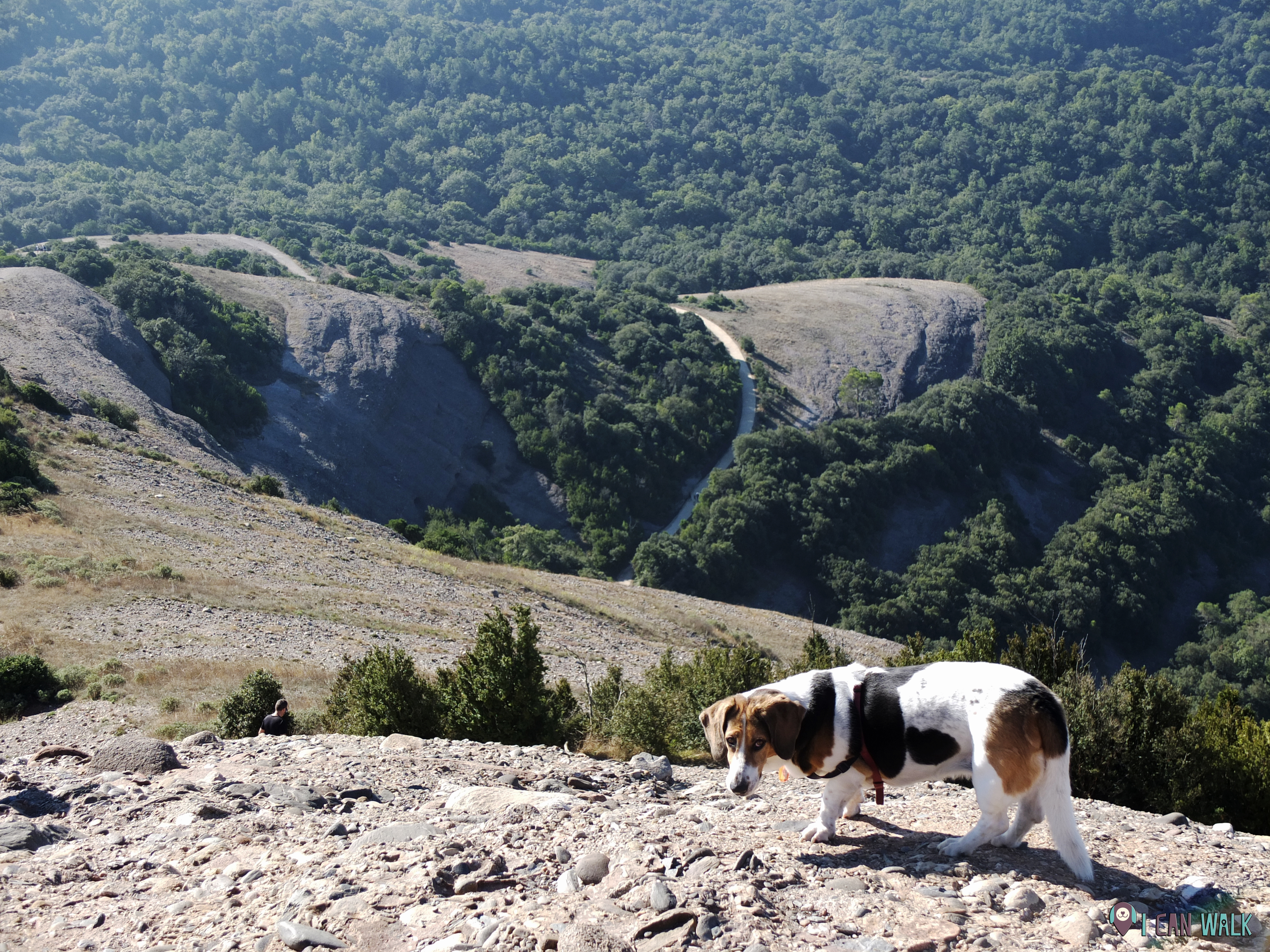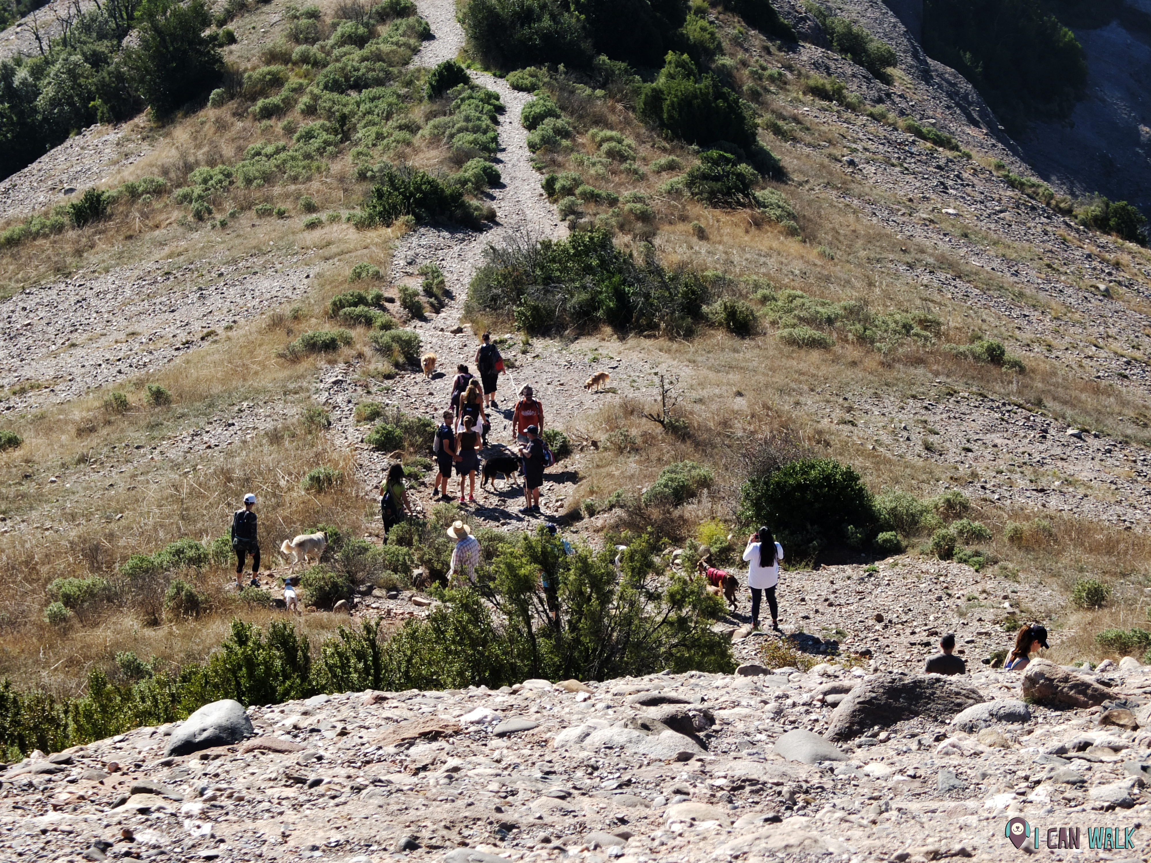 Pues ahora toca bajar. Sigue de nuevo por el camino, hasta llegar al Coll d’Eres. Nosotros no hemos tenido que ayudar a los perros ni en bajada ni en subida, pero puede que alguno necesite empujón en algún punto.