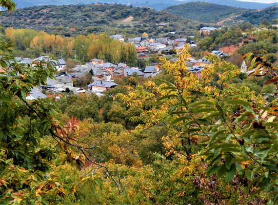 Una vez vistas, continuaremos por la senda asfaltada entre castaños hasta llegar a la Fuente de la Tía Viviana, donde cogeremos el Camino del Mirador, que sube a la izquierda de la fuente por una corta pero empinada cuesta a través de un frondoso bosque, hasta llegar a cruzar con una pista ancha de tierra, es la Senda Perimetral.