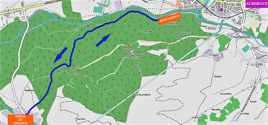 Esta ruta lineal tiene un total de 7km (ida y vuelta). Se trata de un camino señalizado que llega hasta Toral de Merayo