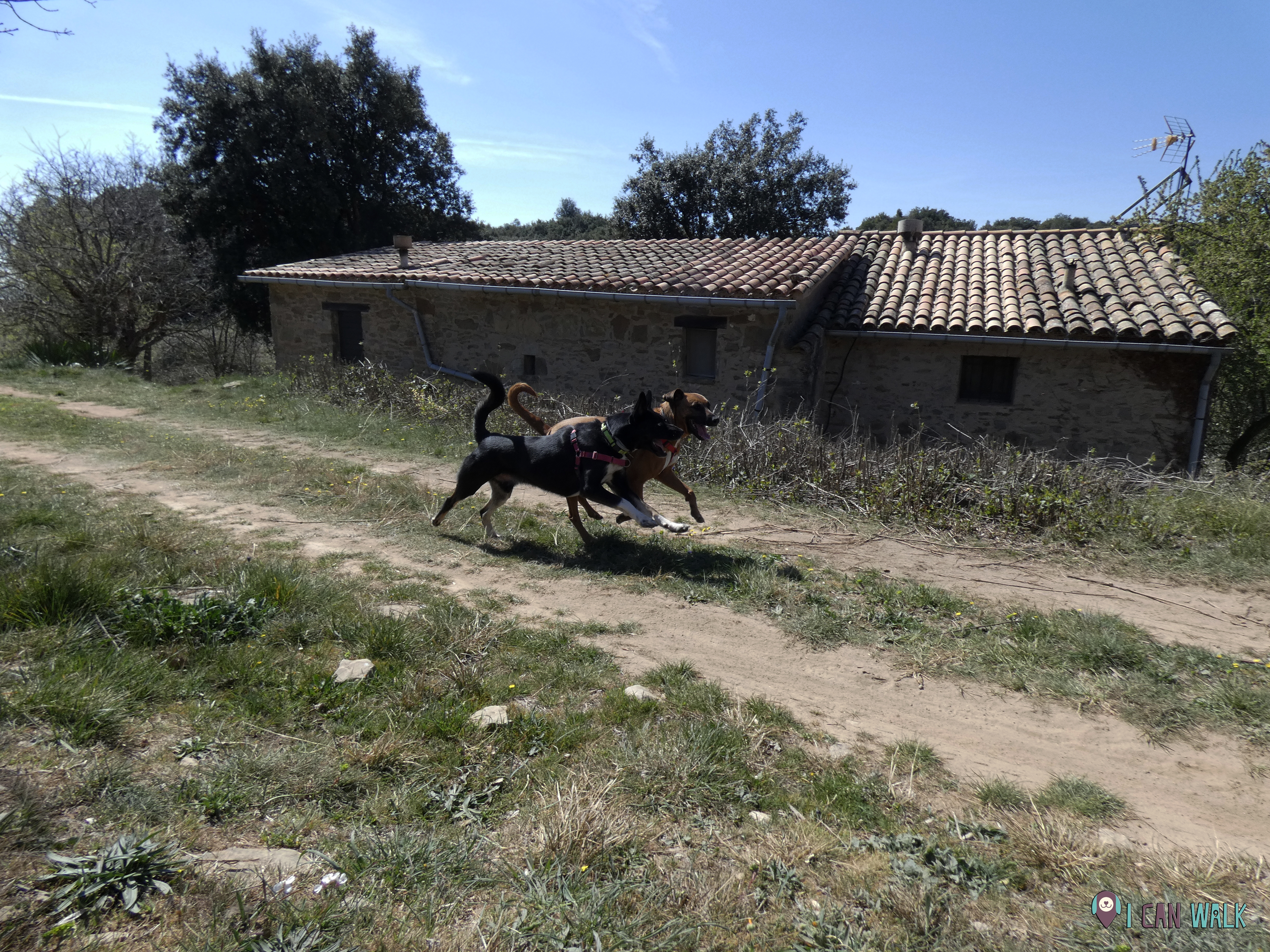 No te asustes, pese a este aviso, el camino es ancho en esta zona y si se trata de perros tranquilos, no es un tramo peligroso en sí mismo.