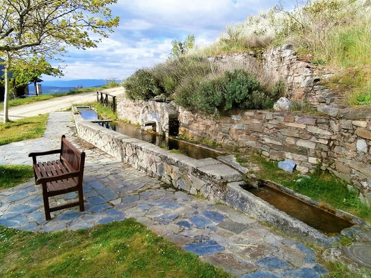 Desde el aparcamiento subiremos a la derecha unos metros por la carretera. Al llegar a la entrada del pueblo giraremos a la derecha, dejando la iglesia a nuestra izquierda, llegando al final a una fuente con pilón que queda nuestra derecha.