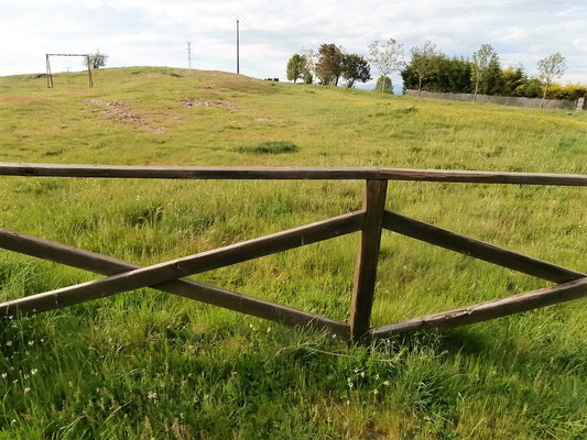 Continuaremos subiendo por el sendero entre castaños hasta llegar a una ancha pradera, por la que seguiremos de frente dejando a nuestra derecha un cercado metálico para el ganado.