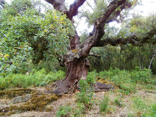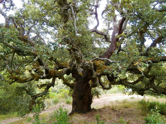 Pasada el área recreativa nos encontraremos con unos impresionantes ejemplares de alcornoques centenarios, de unas dimensiones y belleza que nos asombrarán. Unos metros más adelante, a nuestra izquierda, nos encontraremos con un panel explicativo y unas preciosas vistas con Las Médulas al fondo. Si continuamos unos metros veremos a nuestra izquierda una pequeña bajada donde se encuentra la Fuente del Frade, en la que podremos beber perro y donde acaba esta ruta.