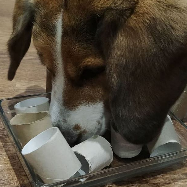 Con el tiempo puedes ir añadiendo dificultades como objetos que tapen el premio o enmascaren su olor, o incluso, jugar con él fuera de casa donde hay más estímulos nuevos y le costará más concentrarse en el olor o sonido deseado.