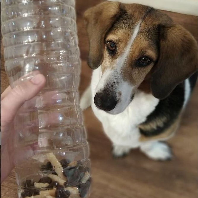 ⚠️Recuerda vigilar en todo momento a tu perro, ya que puede morder la botella y tragar un trozo de plástico.