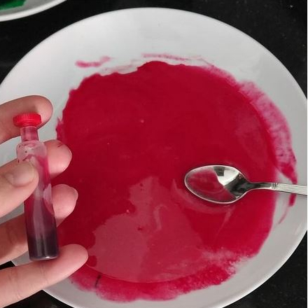 – pintura roja no tóxica. Como no tenemos, hemos hecho pintura comestible casera con una mezcla de harina de avena, un poco de agua y colorante alimentario rojo. Te sirve también pintura infantil.
