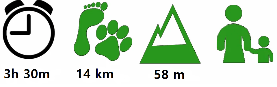 La ruta son un par de horas en total con unos 100 metros de desnivel, nosotros hemos estado bastante más, ya que hemos parado mucho y vamos despacio por el ritmo del peque.