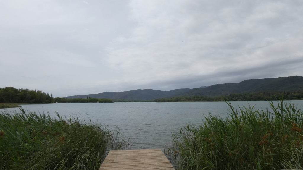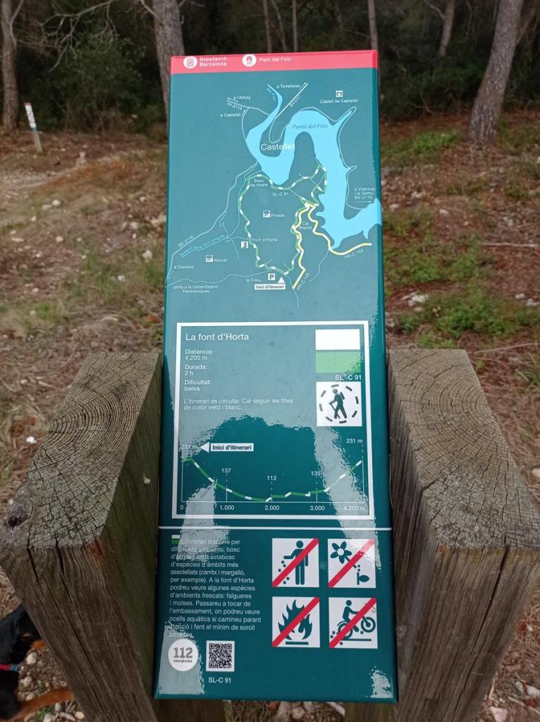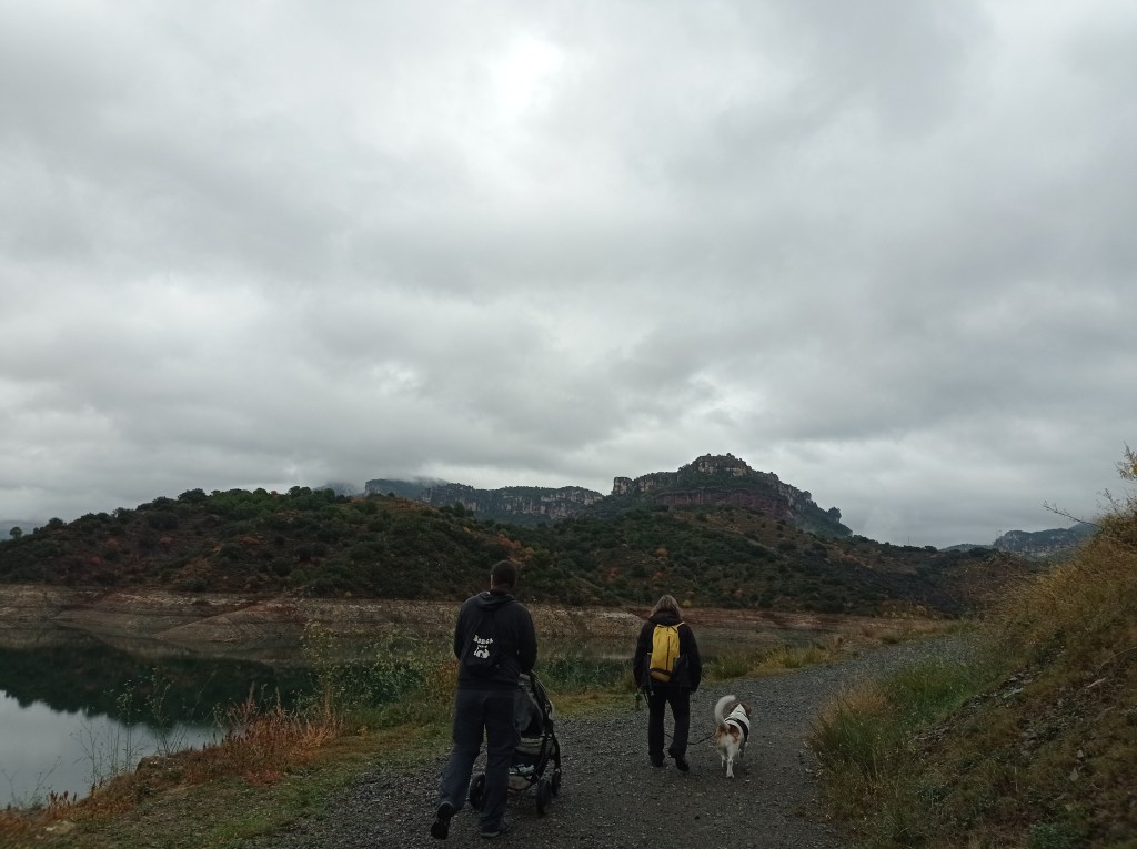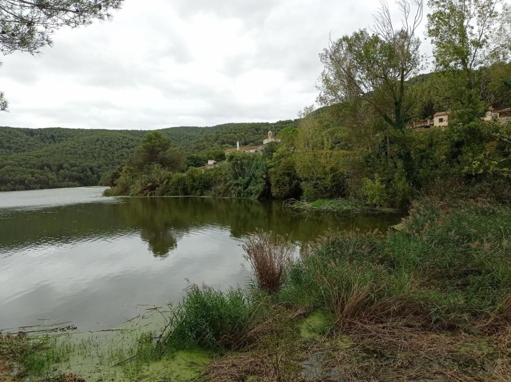 Para empezar la ruta hemos de cruzar al otro lado del pantano y seguir el camino que va paralelo al agua, pasando por delante de «La Caseta del Pantà«.