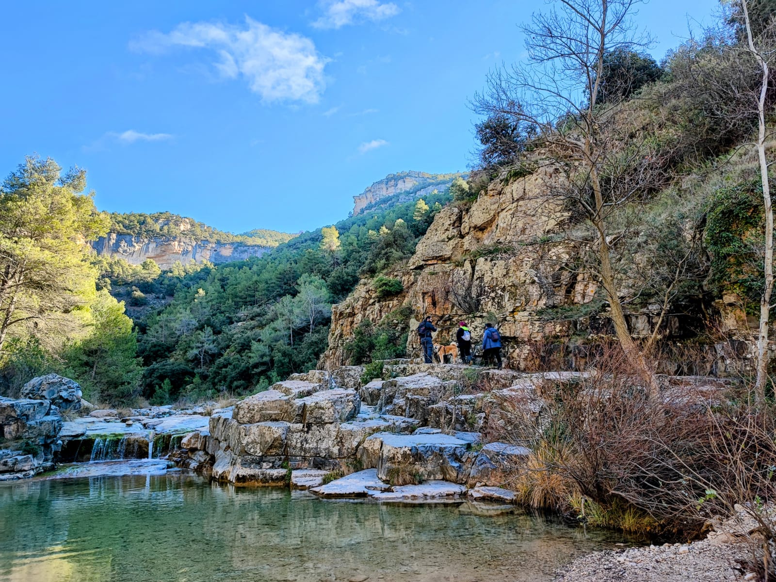 Según nos han dicho, son unas 4 horas ida y vuelta, con desnivel de unos 300-400 metros según la opción de trayecto que escojas. Hay un restaurante con terraza en la Pradera para comer o tomar algo y reponer fuerzas cuando llegues. Recuerda que, a partir del Puente de los Navarros, estás en el Parque Nacional y tu perro ha de ir atado.