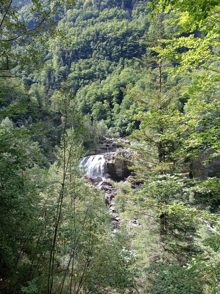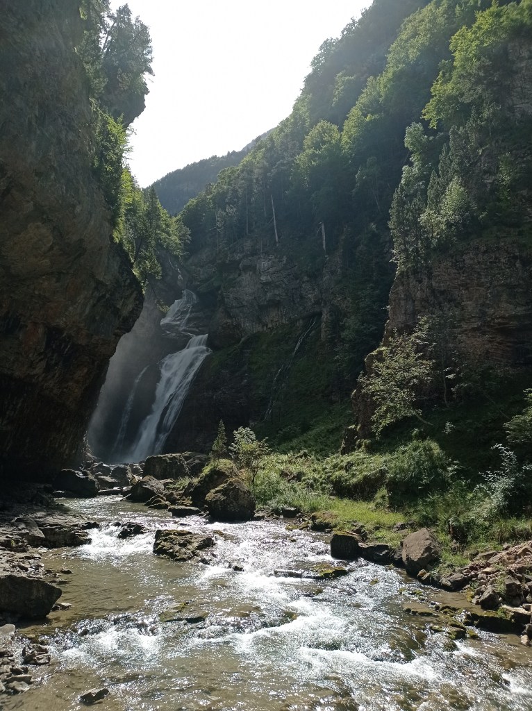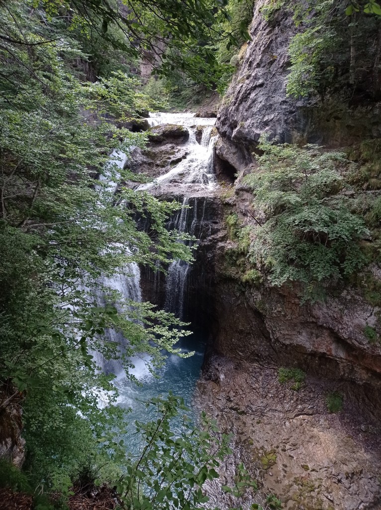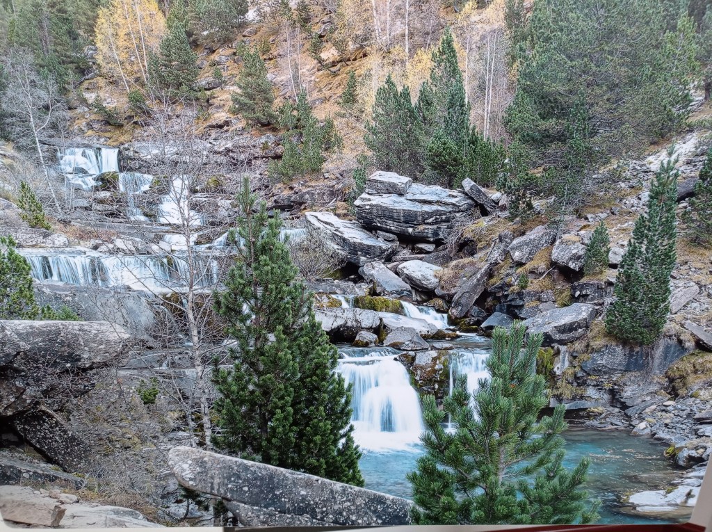 Por este camino llegarás a las Gradas de Soaso dónde el río forma unos escalones de saltos de agua. Si te quedas sin tiempo puedes dar media vuelta aquí, pero si decides alargar el camino, a una hora tienes la Cascada de Cola de Caballo. El camino pasa ahora por una zona llana producida por un circo de origen glaciar desde dónde puedes disfrutar de las vistas de Monte Perdido. Al final del trayecto verás la Cola de Caballo. Nos han dicho que si hacemos esta ruta, volvamos por el mismo camino.