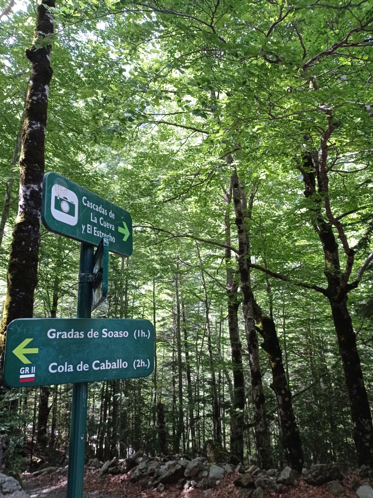 El camino comienza al final del aparcamiento, por el camino de Soaso de la izquierda. Está muy bien señalizado, así que no tiene pérdida.