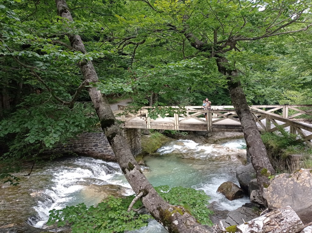 Para la vuelta no tomaremos el mismo camino, sino que bajaremos por el camino que hay entre la primera y la segunda cascada. Este camino te lleva a un puente precioso que has de cruzar y seguir por el otro lado del río. Llegarás al tramo adaptado del camino y de allí hasta el parking hay aproximadamente un kilómetro.