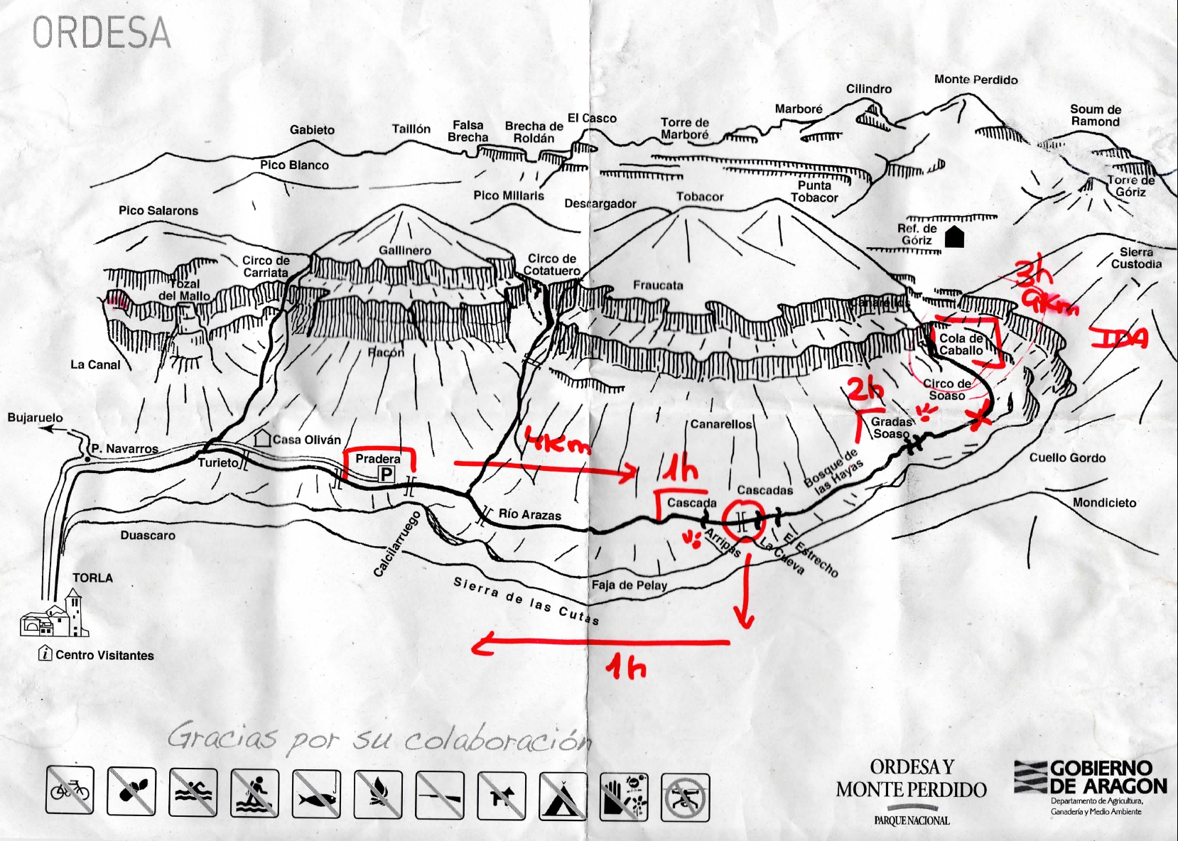 Una vez llegamos a la Pradera, hay distintas rutas que podemos hacer, desde 2 horas hasta las 6 (ida y vuelta), o incluso más si decides llegar a Monte Perdido, por ejemplo.
