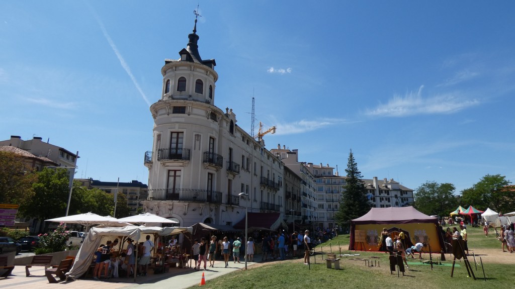 Al terminar de callejear y disfrutar de las vistas desde la muralla del castillo, hemos cenado en una terraza de la plaza del ayuntamiento. Hay distintas opciones para comer, a precios muy variados, nosotros nos hemos decidido por una pizzería, ya que en el resto de locales hemos visto pocas opciones vegetarianas y los precios de las pizzas eran algo más económicos.