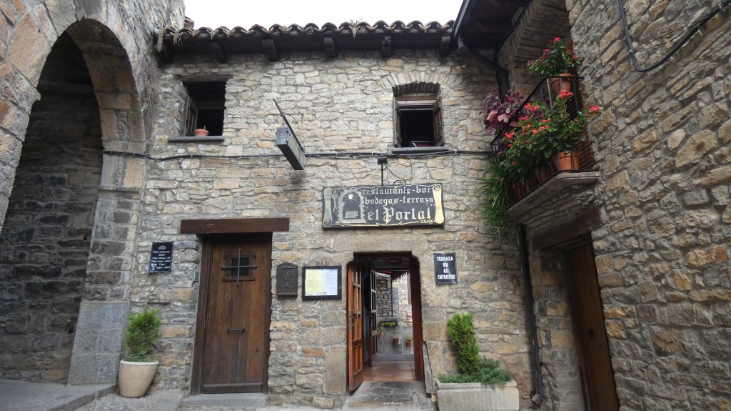 Nos hemos levantado relativamente temprano para guardar todas las cosas, hacer el check out y desayunar en una terraza del pueblo de Aínsa. Hemos aprovechado también para comprar unas pastitas en una pastelería de la zona para llevar a casa.