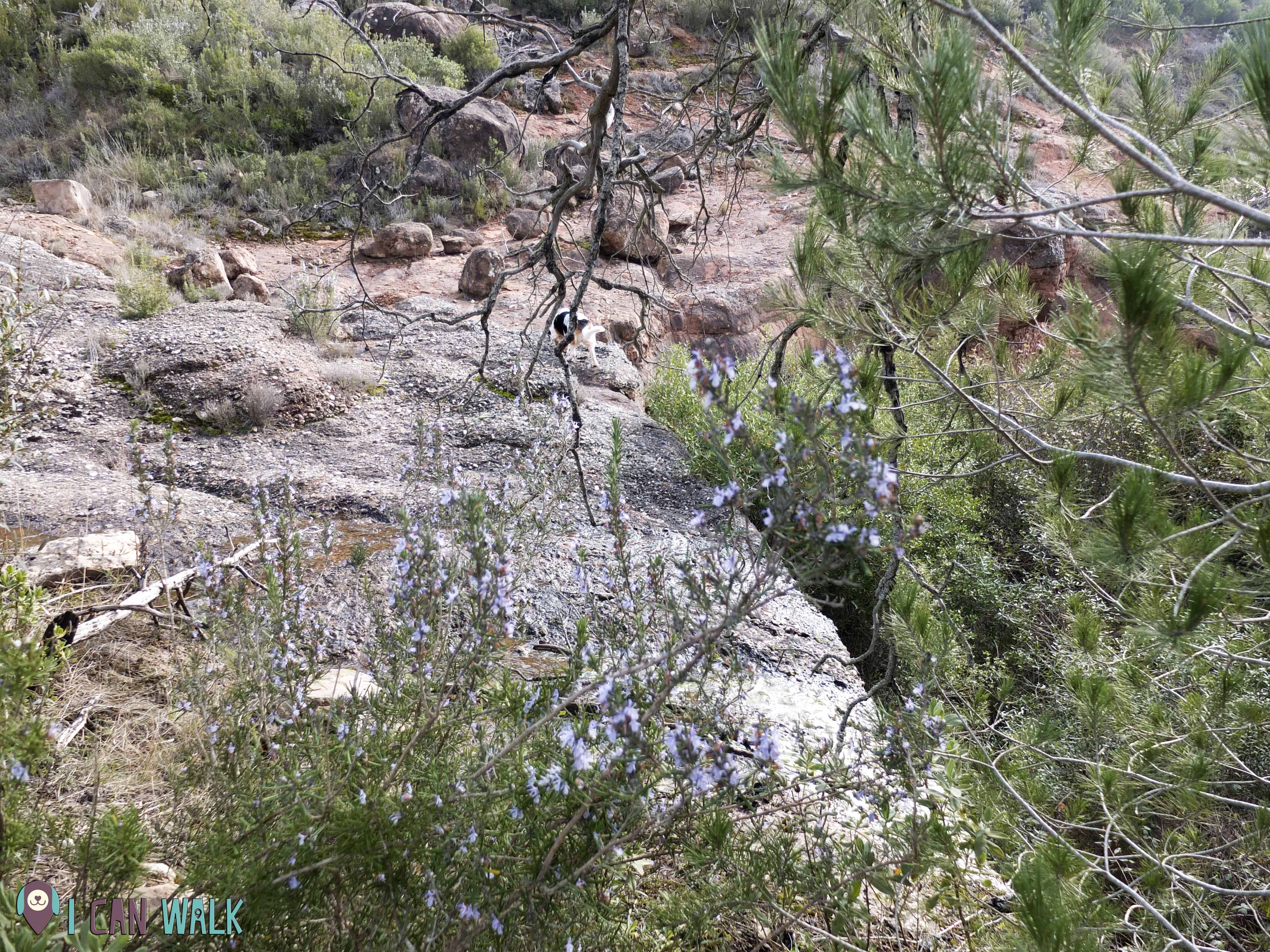 Pasados unos 700 metros del Gorg, hay un punto en el cual pasamos cerca de la carretera, si tu perro tiende al escapismo átalo para evitar un susto.