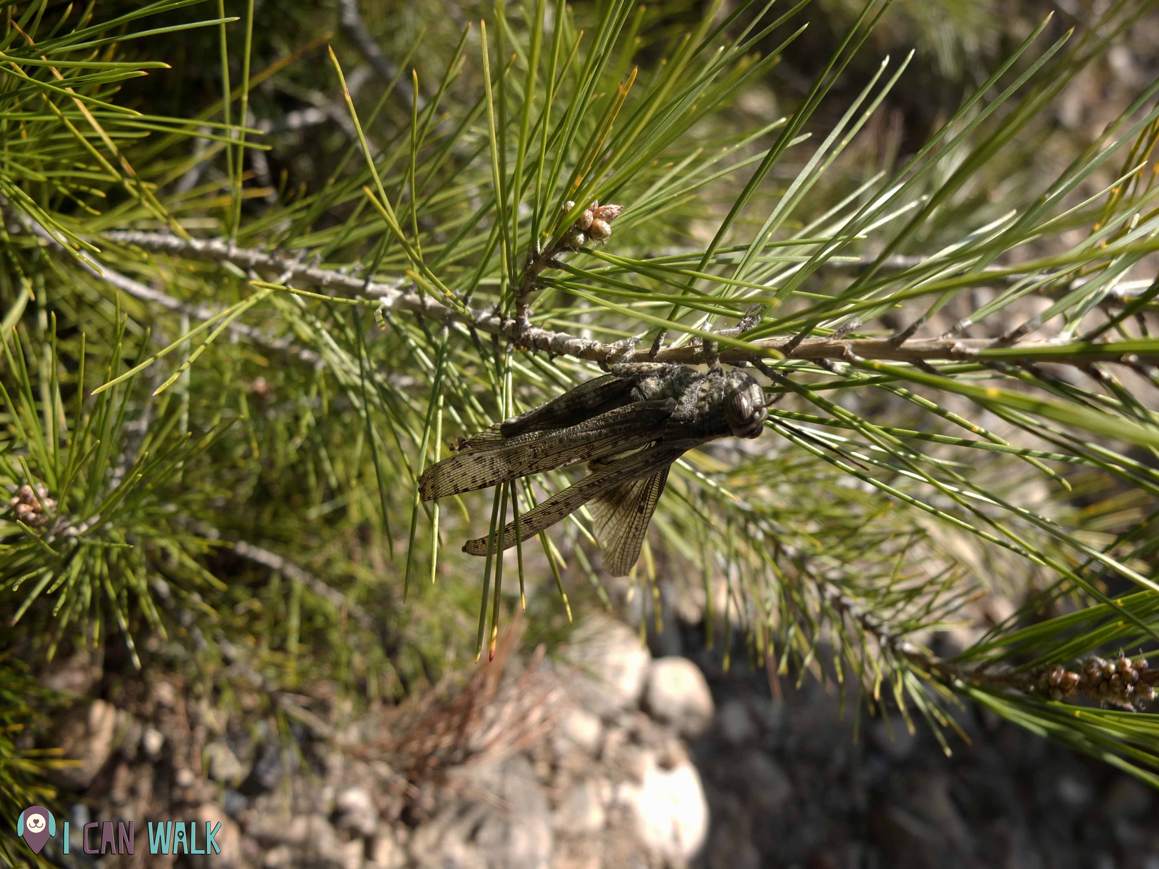 Tras una curva, verás que puedes seguir recto el camino o a mano izquierda siguiendo los postes, aquí vamos a coger el caminito que tiene los postes y queda más a la izquierda.Llega un punto en que la valla electrificada se mete hacia la izquierda entre unos arbustos, en este punto has de seguir recto por un sendero entre arbustos. En nuestro caso lo hemos encontrado bastante descuidado y con maleza que nos ha dificultado algo el paso. De nuevo cuidado con los pinchos de algunos arbustos.