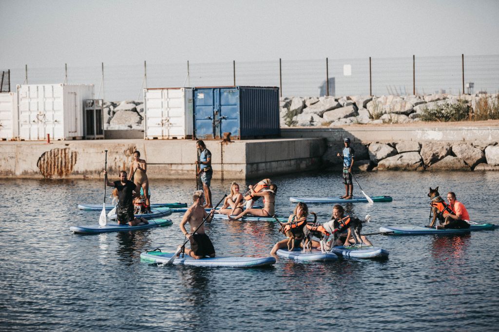 Paddlesurf con perros, Barcelona ciudad