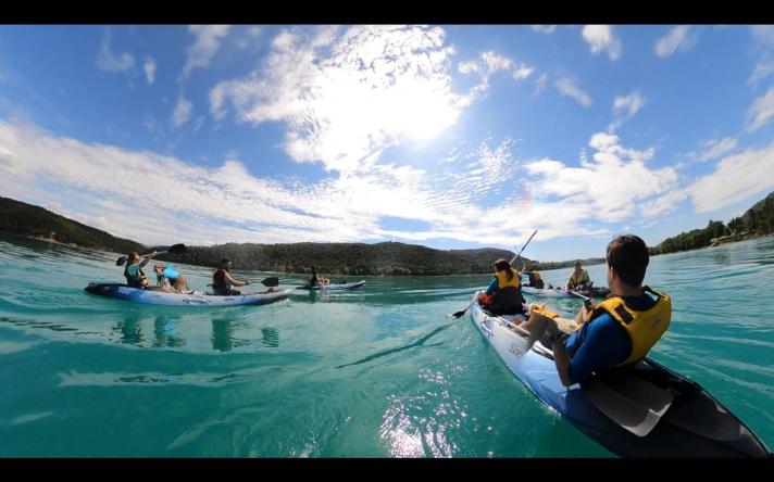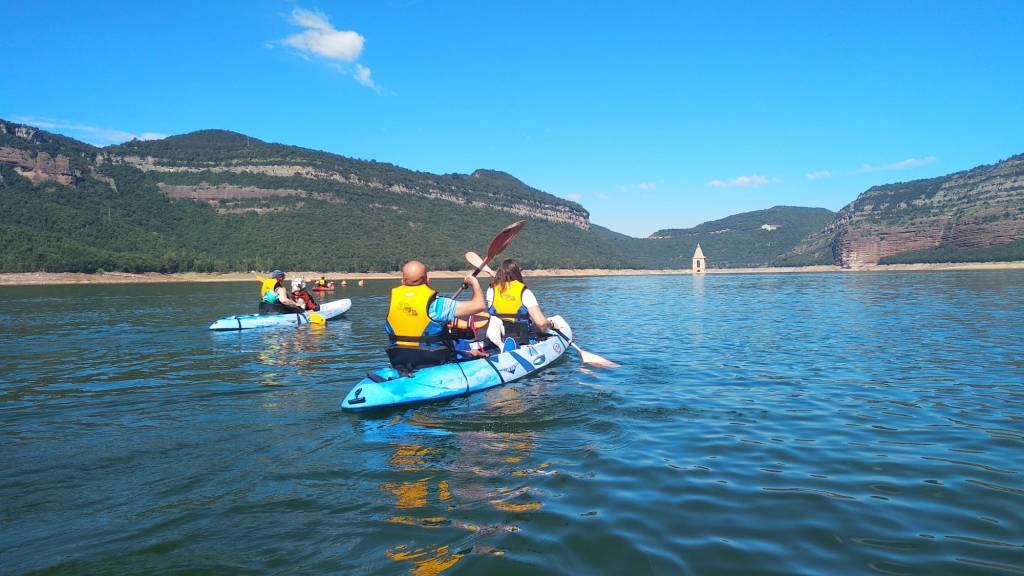 Kayak con perros en Sau