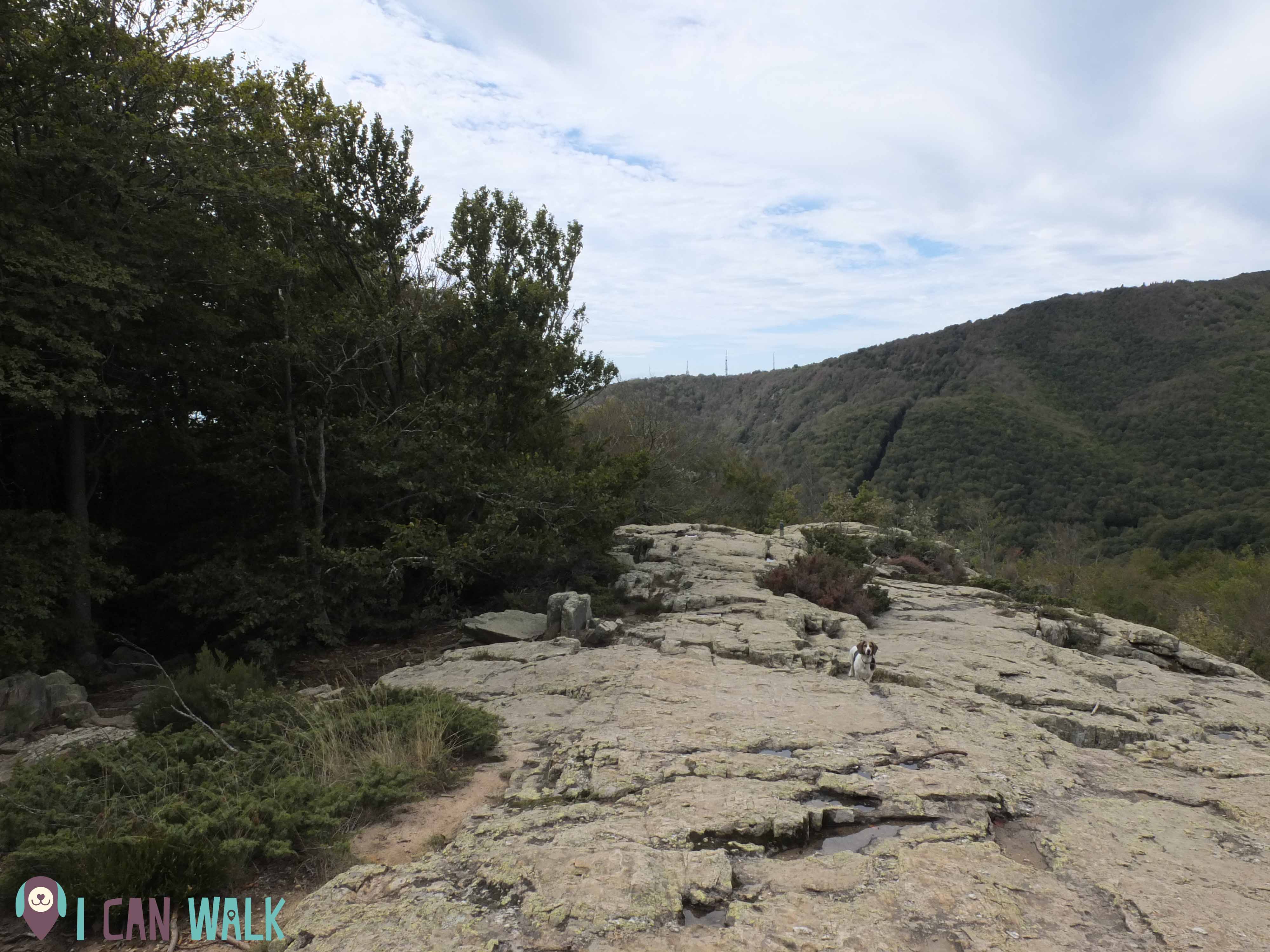 Nosotros hemos seguido el camino sigue recto por el centro del bosque, y cuando llegues al siguiente mirador que queda frente tuyo, sigue hacia la derecha para bajar hacia el camino (en esta zona las marcas naranjas de los árboles están algo borrosas, pero los excursionistas suelen dejar piedras amontonadas indicándote por donde puedes seguir).