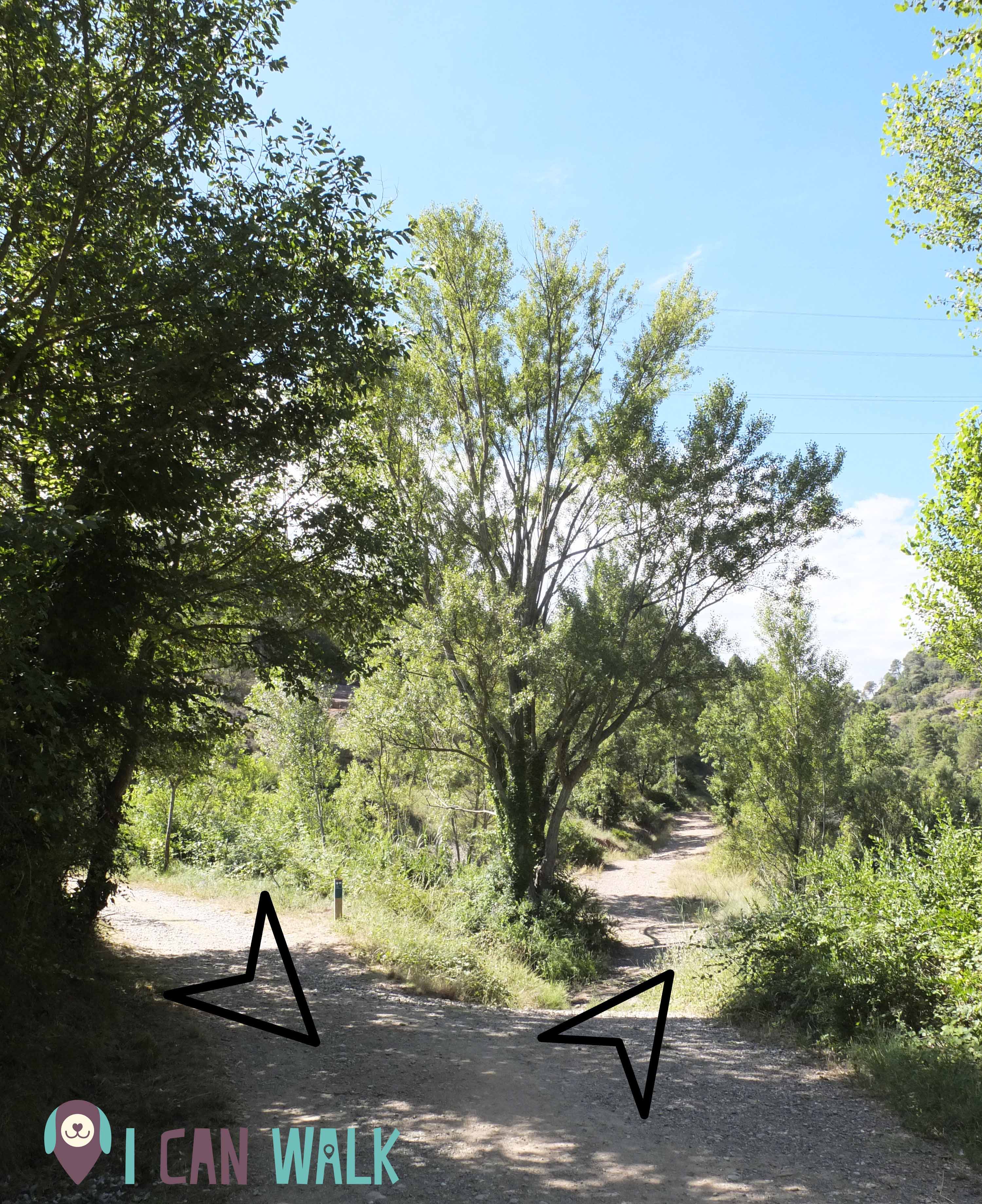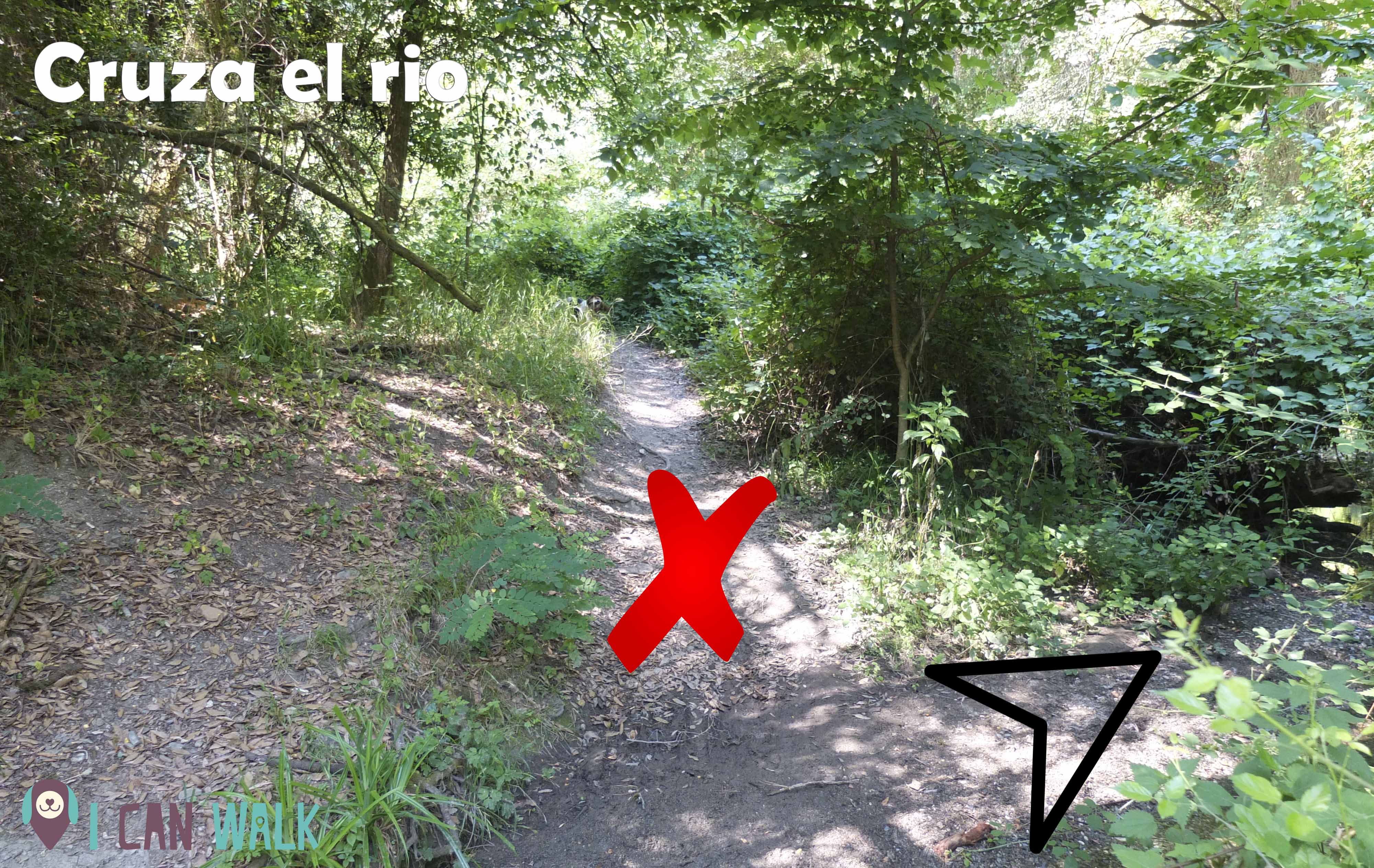 En el primer desvío has de cruzar el rio, cogiendo el camino que queda a mano derecha (mira la foto para ver si vas bien).