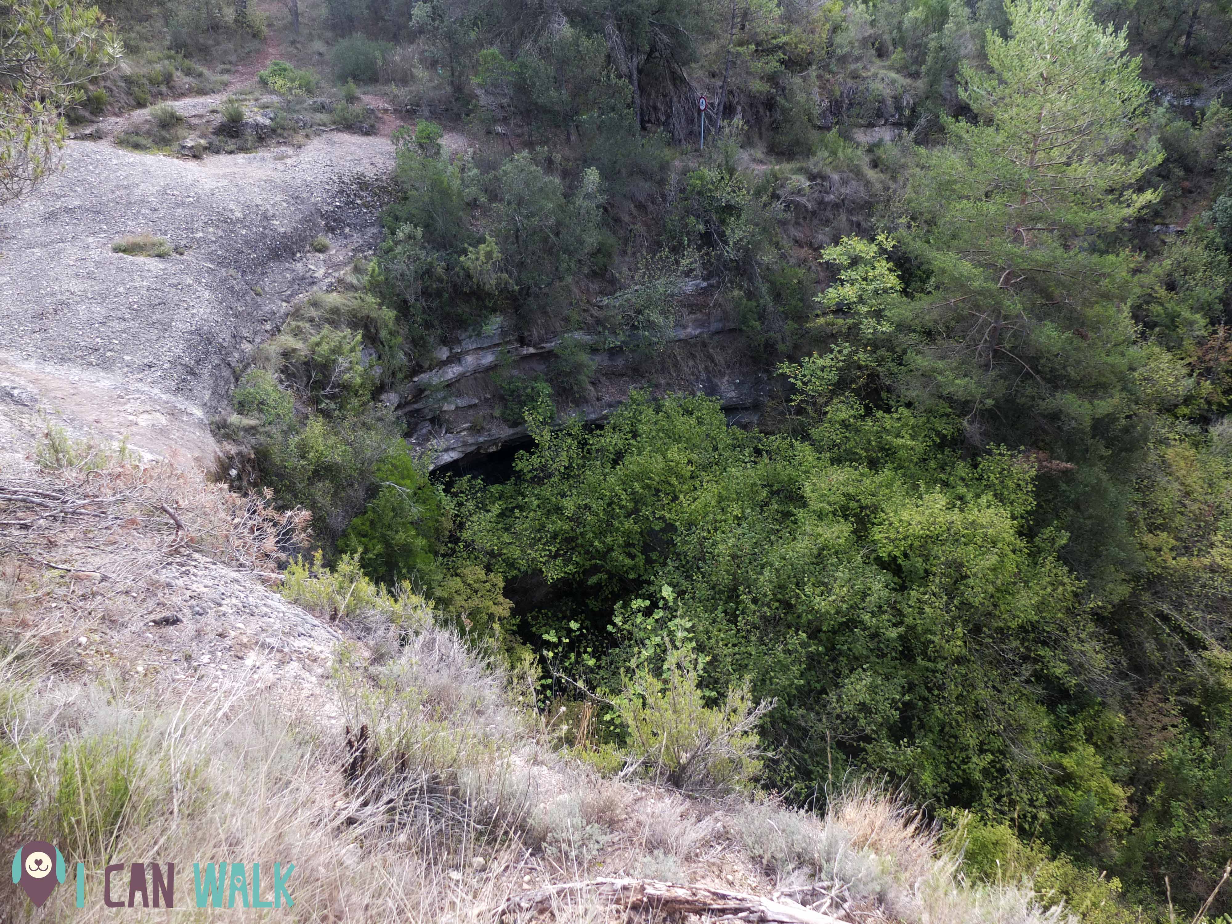 La “Font del Foradot” es, como indica su nombre, una fuente que se encuentra en un “agujero” formado en la pared de roca. Para llegar a ella hay que desviarse un poco del camino de descenso. Aquí también pueden remojarse los perros, y es un lugar muy interesante para descubrir los recovecos de la roca y las curiosas formas que hace.
