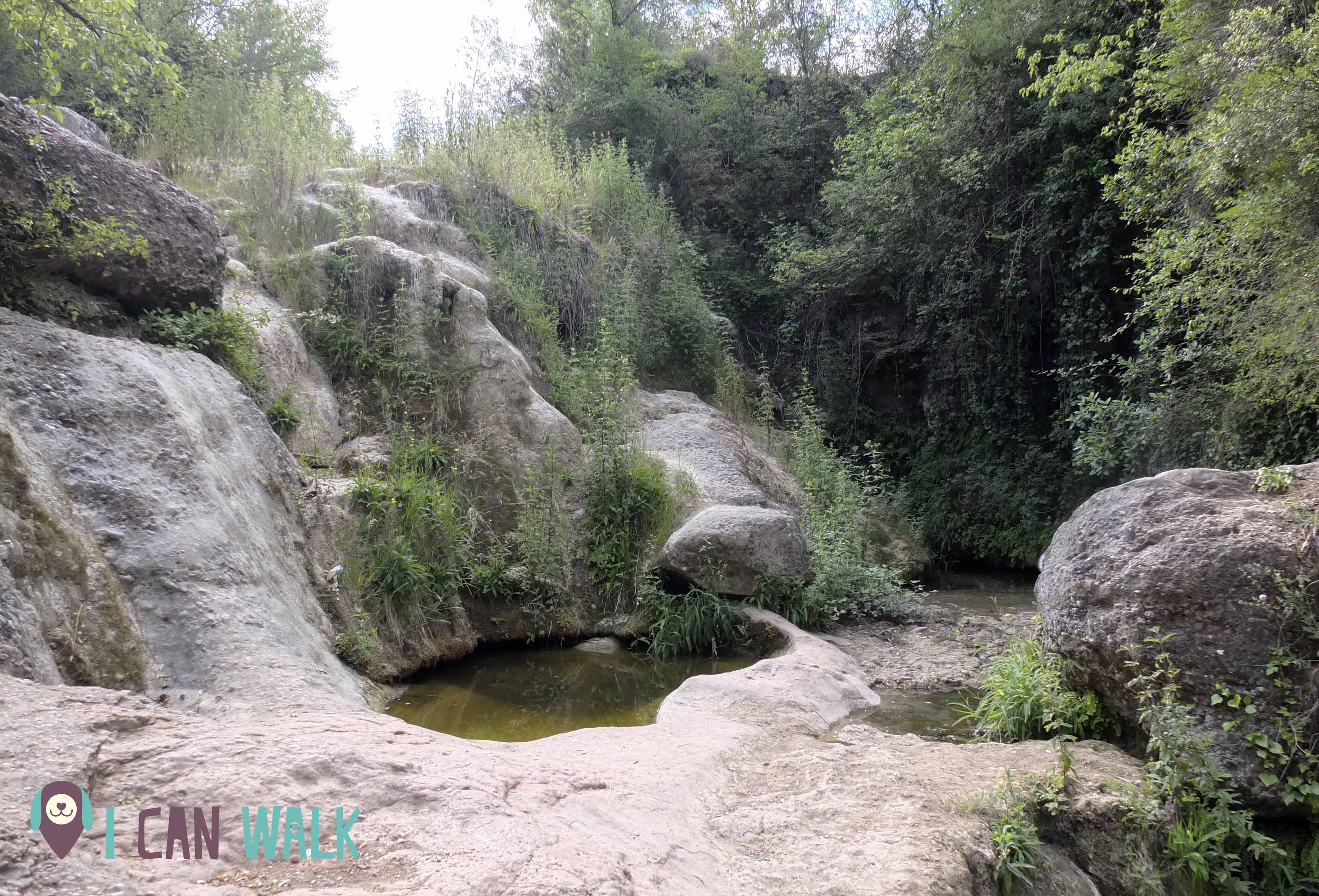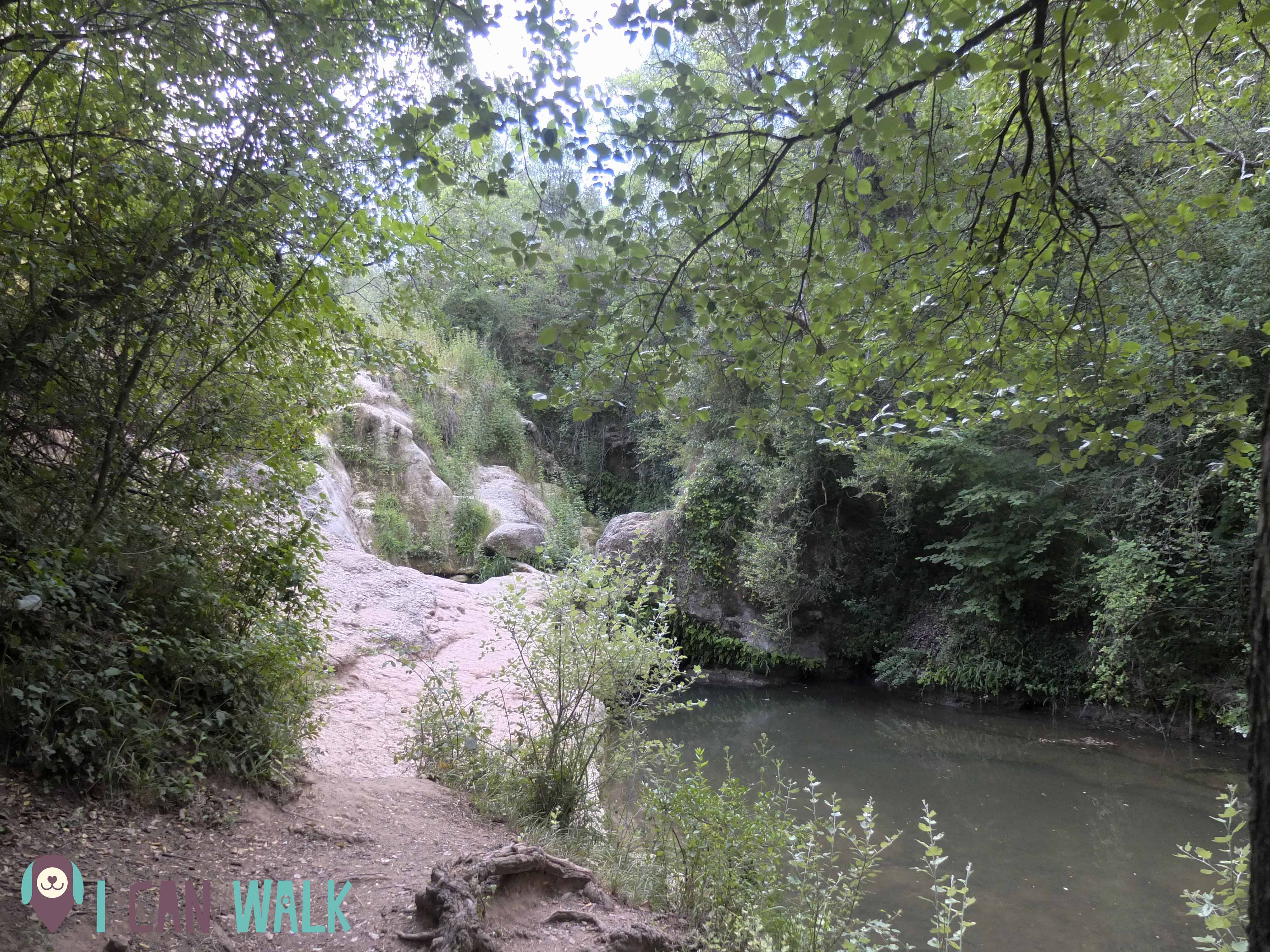Justo tras unos árboles, veremos el precioso “Gorg del Pare”, que fuera de temporada de sequía está así de espectacular.
