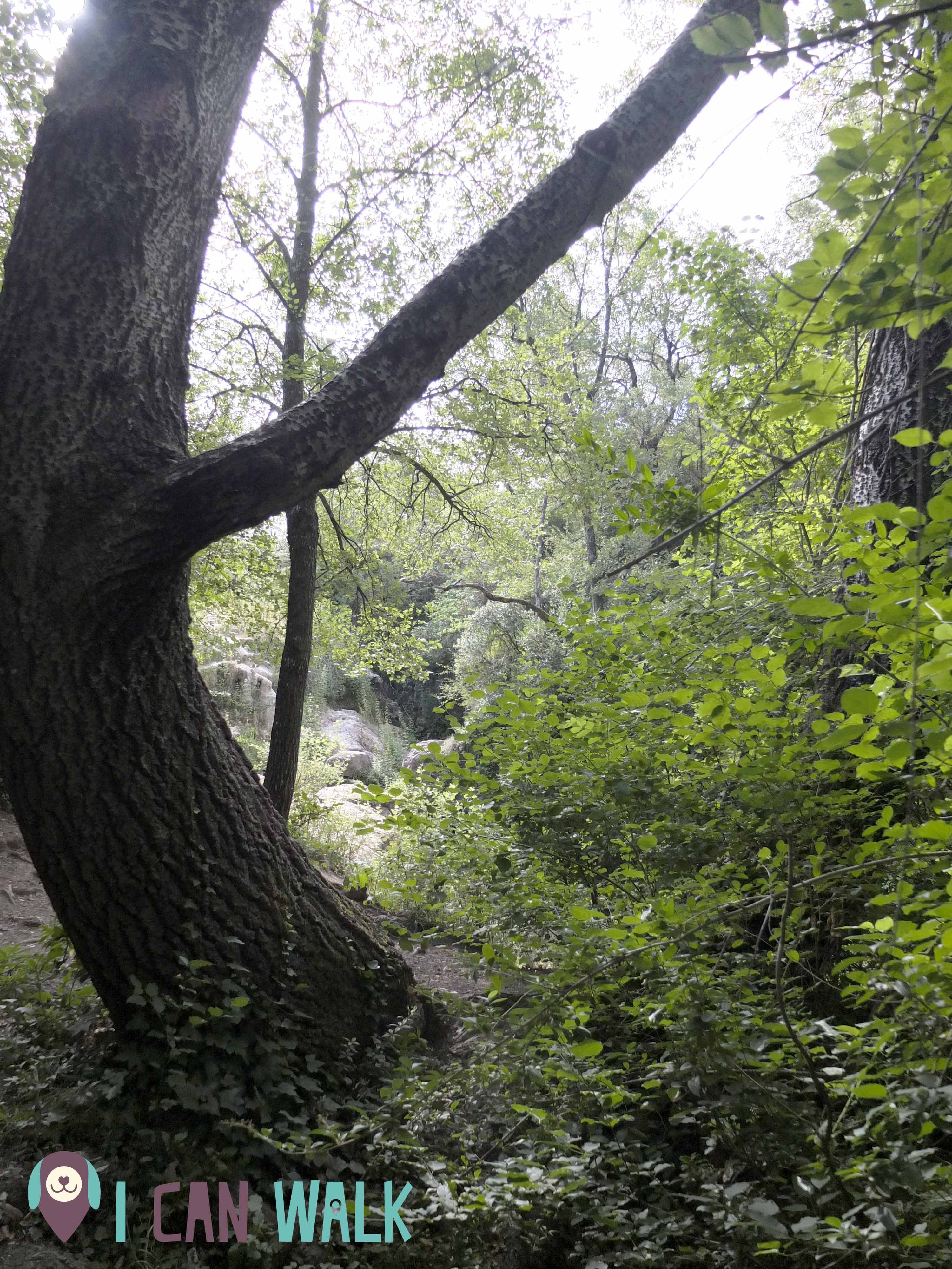 Cuando pases el árbol «centenario» (foto) encontrarás un descampado. Crúzalo recto y llegas a otro descampado más pequeño. Justo en frente de ti hay un pequeño hueco entre los árboles (foto), entra por allí.