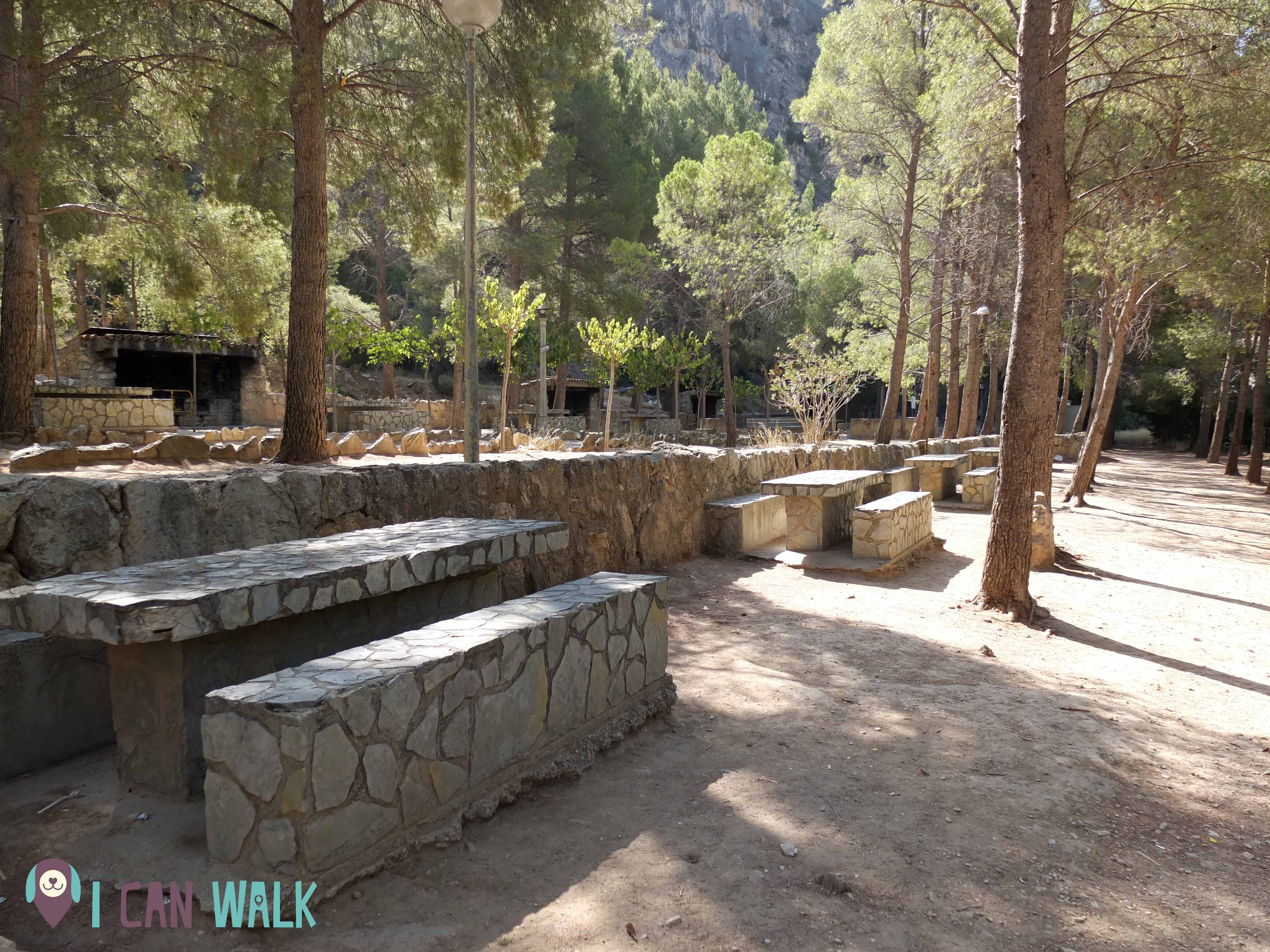 Una vez allí: cuando llegues al Balneario, puedes bajar por el lado derecho del edificio y justo enfrente verás el rio. Una vez veas el agua puedes ir a mano derecha o a mano izquierda: si es temprano es posible que estéis solos o casi solos, de modo que puedes comenzar por ir a la derecha. Esta zona suele comenzar a llenarse hacia media mañana, de familias que van a comer y bañarse. Hay una la pasarela con escaleras -que puede estar semi-inundada al principio del recorrido-, si la sigues llegaras a algunas zonas donde el agua es muy profunda y la gente se tira desde las rocas. Cuando la pasarela desciende y llegas de nuevo a nivel del agua, hay una zona de piscina natural muy agradable donde remojarse.