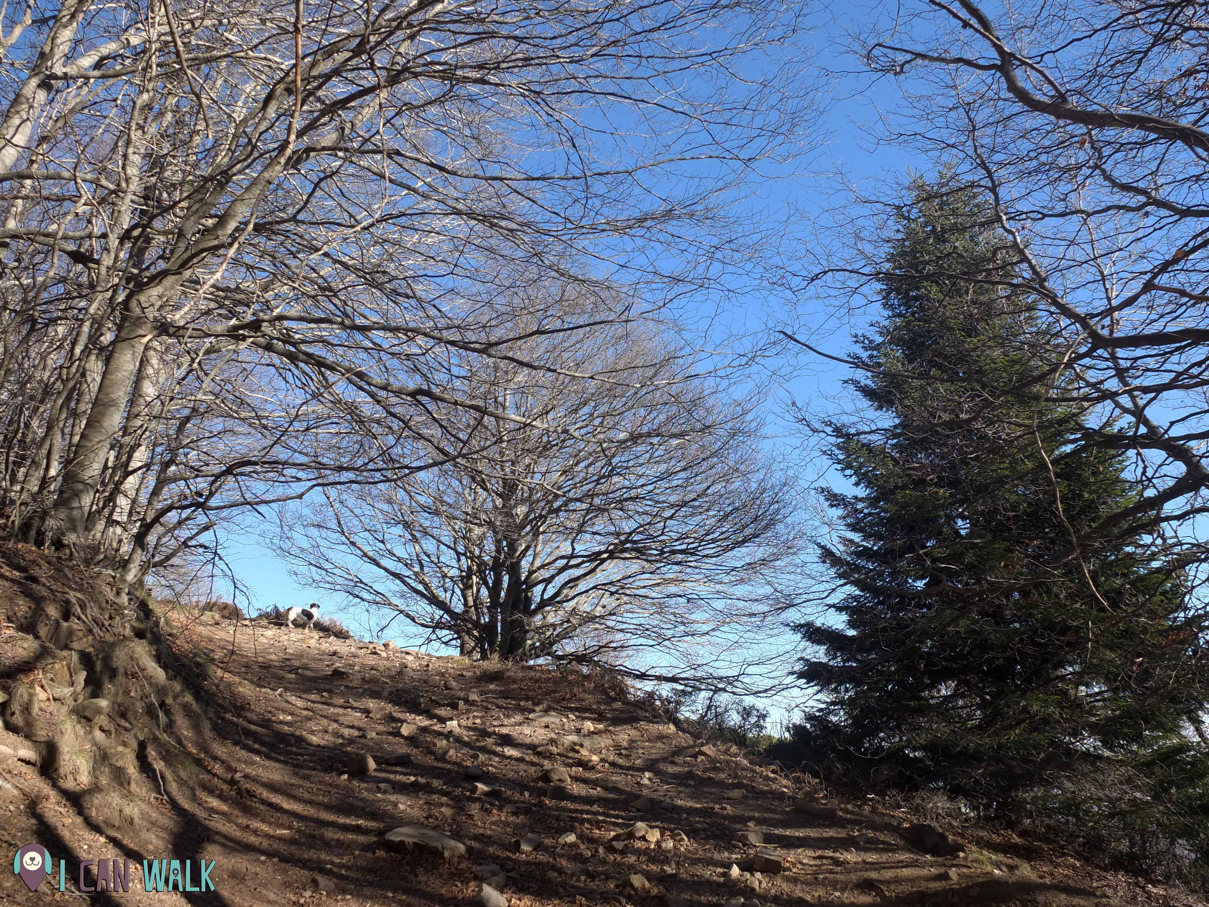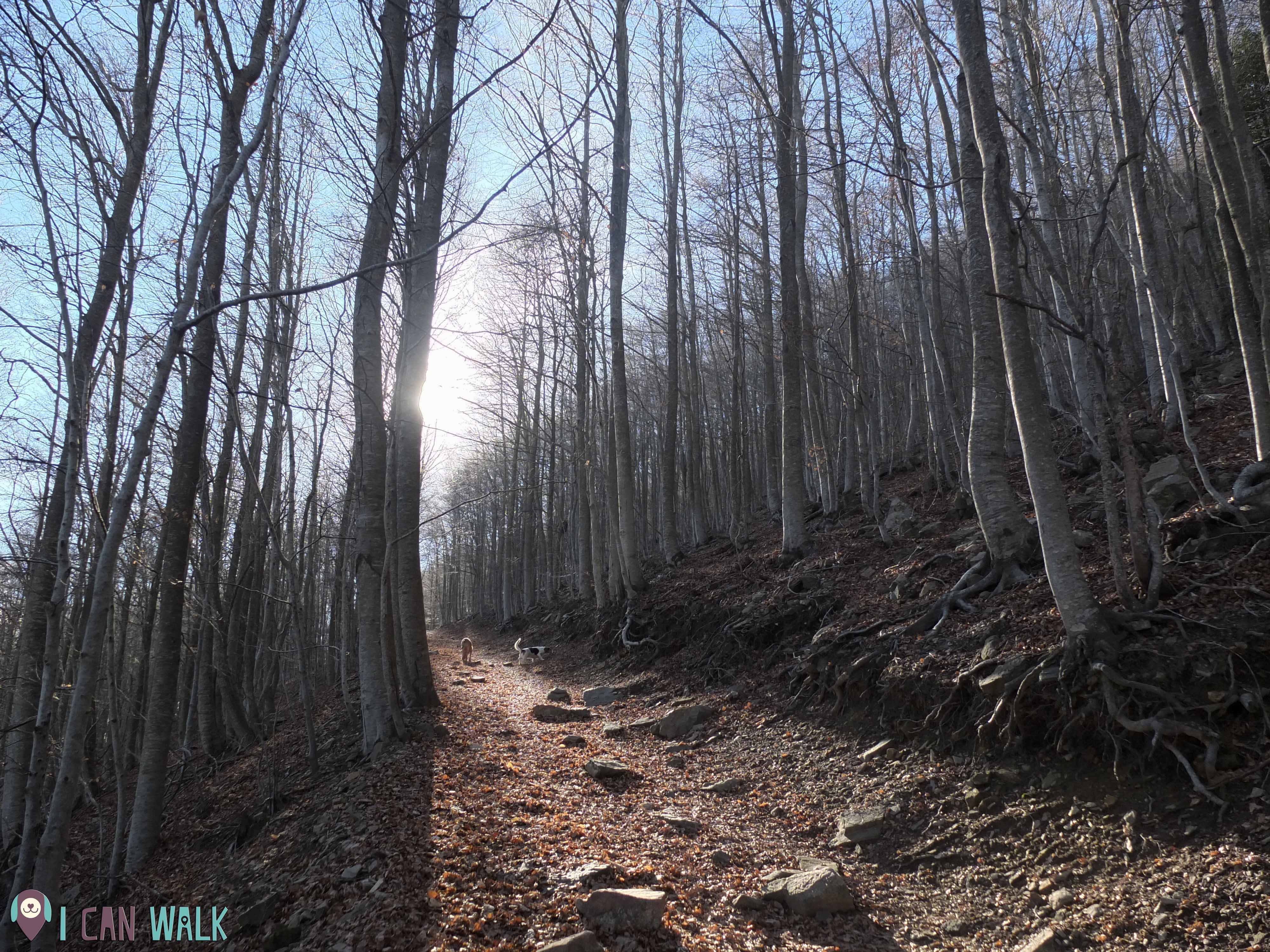 Más o menos a mitad del ascenso verás l’Abetosa. Este lugar es fácil de reconocer porque pasamos de tener un entorno de hoja caduca a una “entrada mágica” formada por Avetos verdes. Tras este punto, veras que el camino sigue recto o hacia la izquierda (dirección Roc Pedrer) vamos a seguir la ruta por el camino recto, hacia Turó de l’Home (nosotros hemos cogido el desvío para ver que había, pero esto nos ha alargado el camino una media hora entre ir y volver a l’Abetosa, el camino no tiene nada particular y no atajas, de manera que no vale la pena que te desvíes).