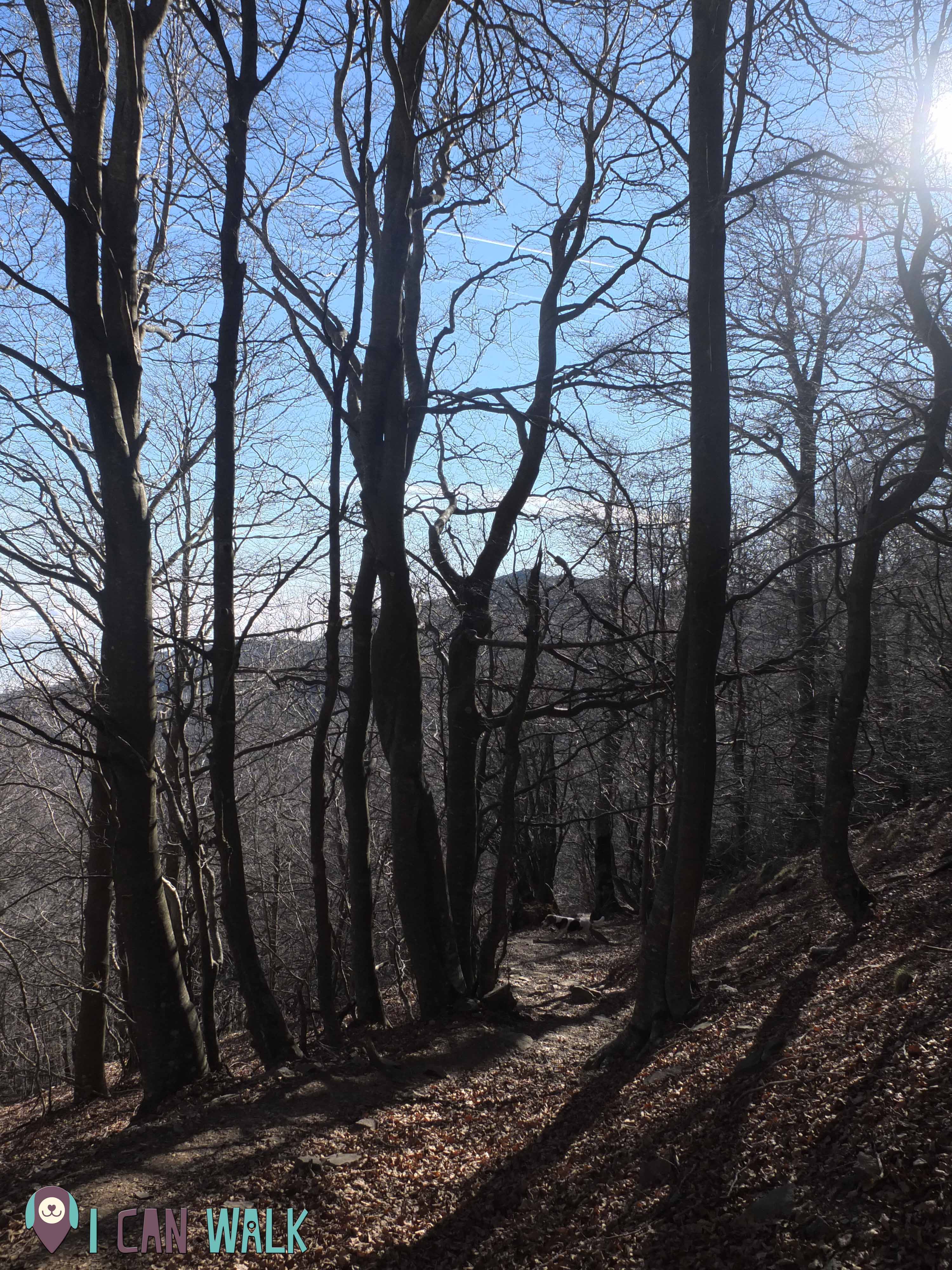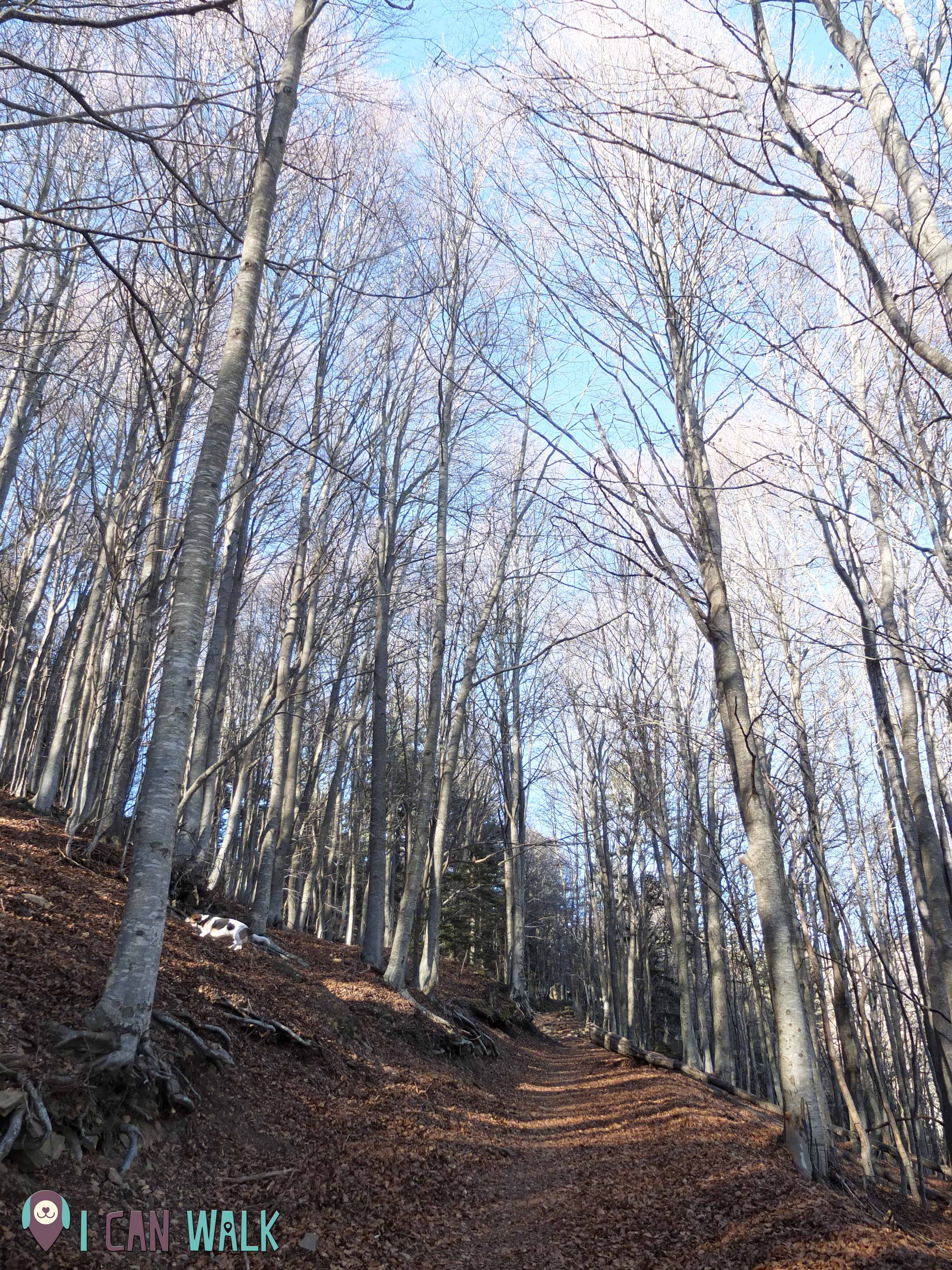 En esta época, el suelo de todo el trayecto está cubierto por hojas, -dándole al paisaje un aire mágico- pero has de vigilar, porque el grueso de las hojas puede esconder piedras o desniveles en el terreno.