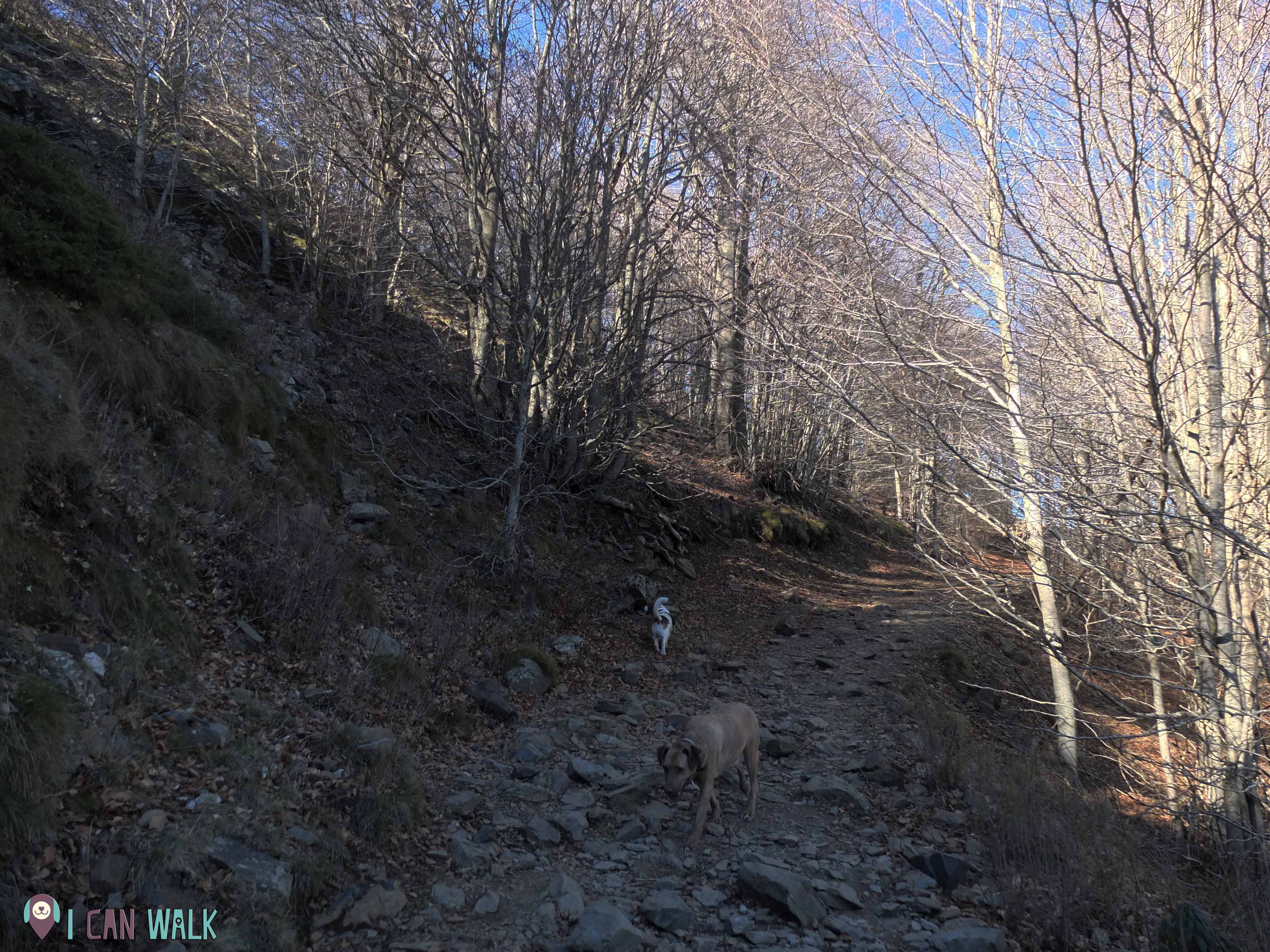 Nosotros hemos cogido el desvío para ver les Agudes, el camino está bien indicado. Como ya te he dicho, en ciertos puntos hay que pasar zonas estrechas y con cierto desnivel. Personalmente, el punto más conflictivo es la zona empedrada que hay hacia el final del desvío, ya que he sufrido un poco por miedo a los resbalones (no ha pasado nada, y los perros no han tenido problemas para pasar).
