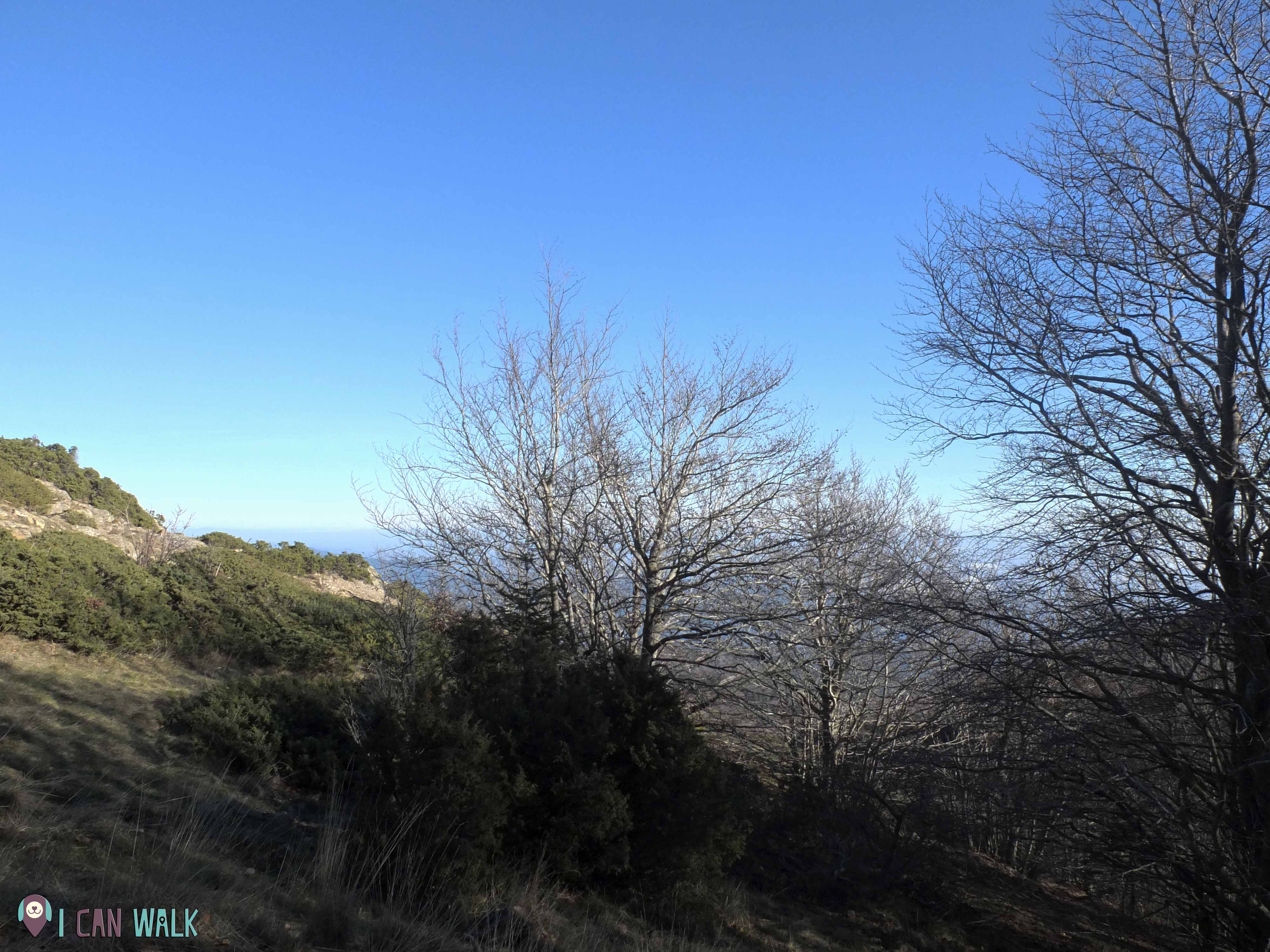 Por esta zona ya estamos a bastante altura, y las vistas comienzan a ser muy bonitas, ya podemos vislumbrar el Turó de l’Home tras los árboles, y las ciudades y bosques que tenemos a nuestros pies.